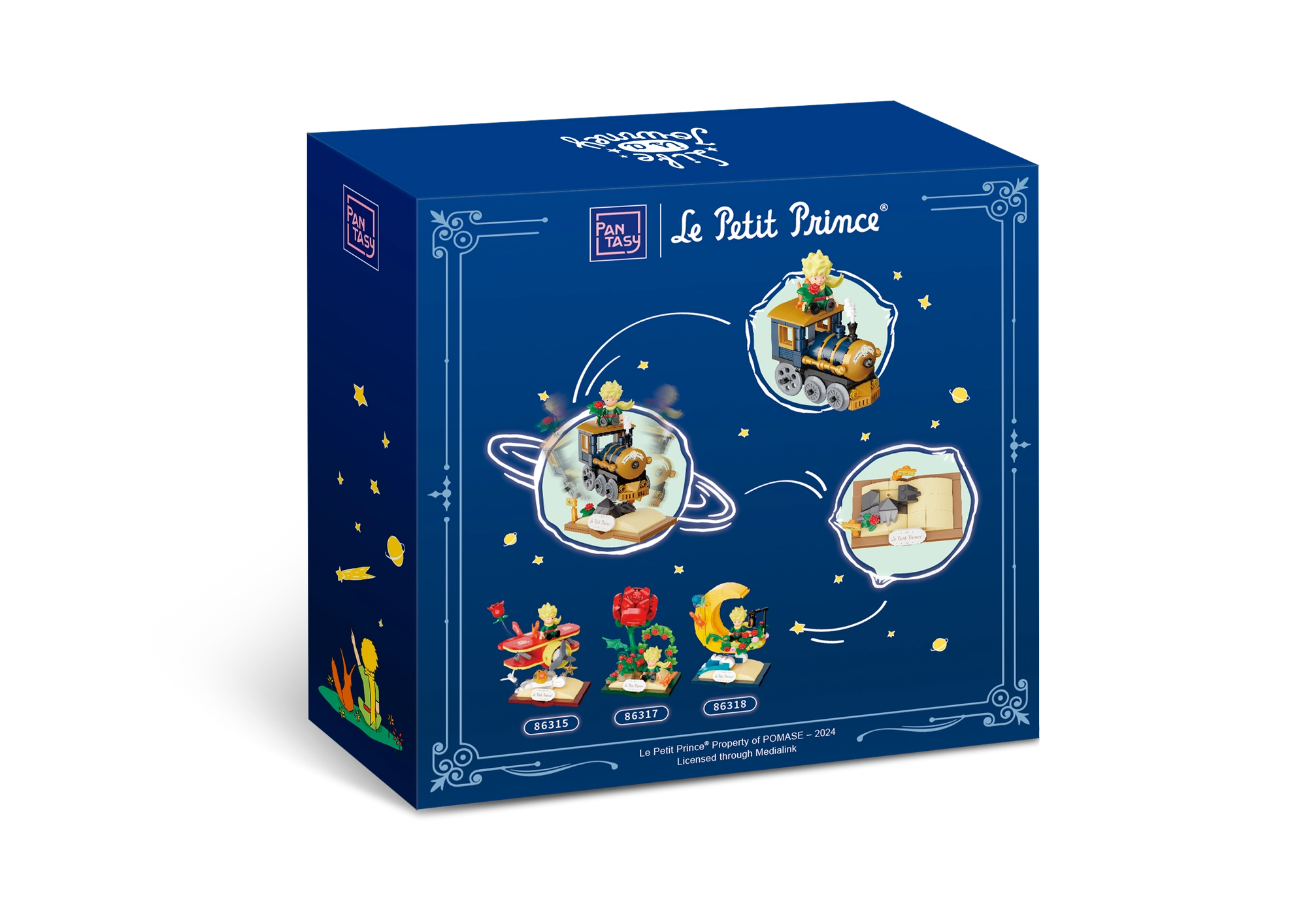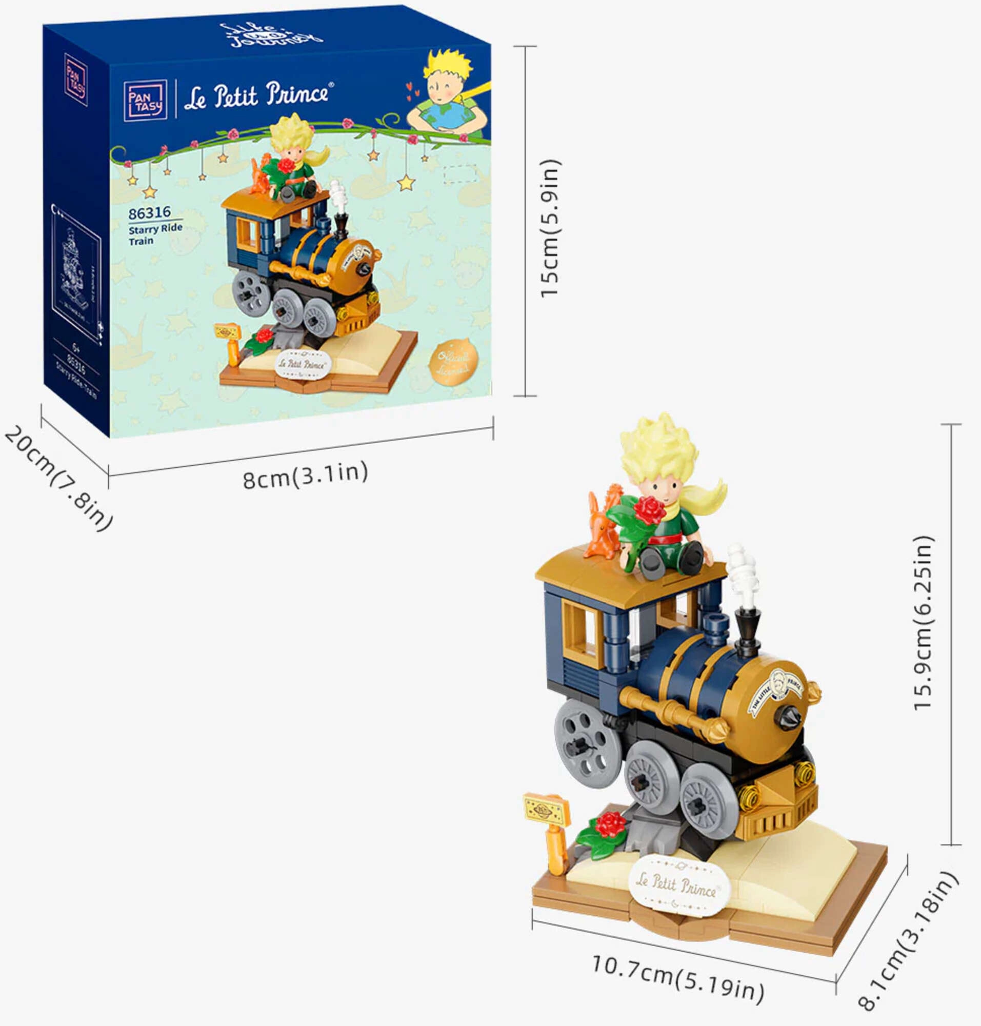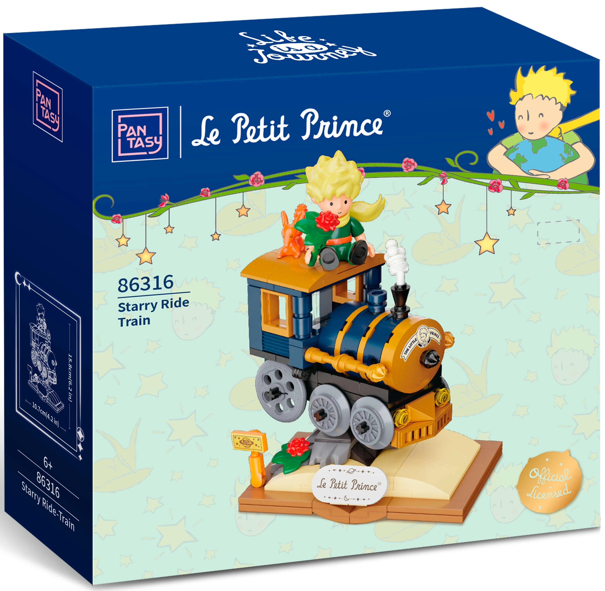 Ez a készlet a Pantasy – Starry Ride Series része, amely A kis herceg költői világába repít. Az elegáns kisvonat arany, tengerészkék és fekete árnyalatokban, nyitott könyvet idéző talapzaton kap helyet „Le Petit Prince” felirattal. Nem hiányoznak a szimbolikus részletek sem: rózsák, csillagok, felhők és A kis herceg rókával.