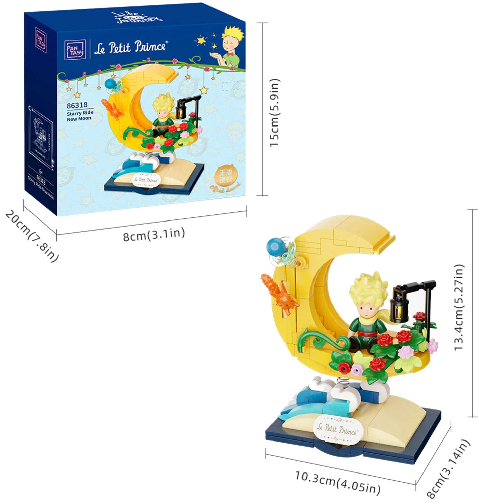Fedezze fel a Kis Herceg történetének varázsát a PANTASY Starry Ride sorozatának design építőkészletével. A „Hold” modell 207 elemet kínál, precíz nyomtatott részletekkel matrica nélkül, minőségi ABS műanyagból, valamint hatásos jelenettel: arany félhold, róka és virágok a „Le Petit Prince” könyv formájú talapzaton. Ideális kreatív szórakozáshoz, kiállításhoz vagy ajándéknak 6+ éves gyerekeknek és felnőtt rajongóknak.