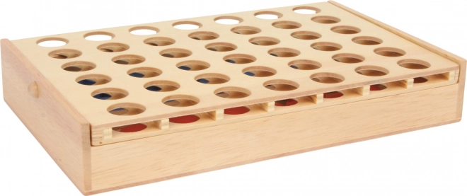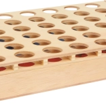 Ez a fa játék kompakt kialakításának köszönhetően ideális utazáshoz. A játékosok felváltva dobják be a piros és kék korongokat a függőleges oszlopokba, a cél pedig négy azonos színű korongból álló sor kialakítása. A minőségi fa kivitelnek köszönhetően a játék nemcsak esztétikus megjelenésű, hanem tartós és hosszú élettartamú is.