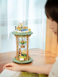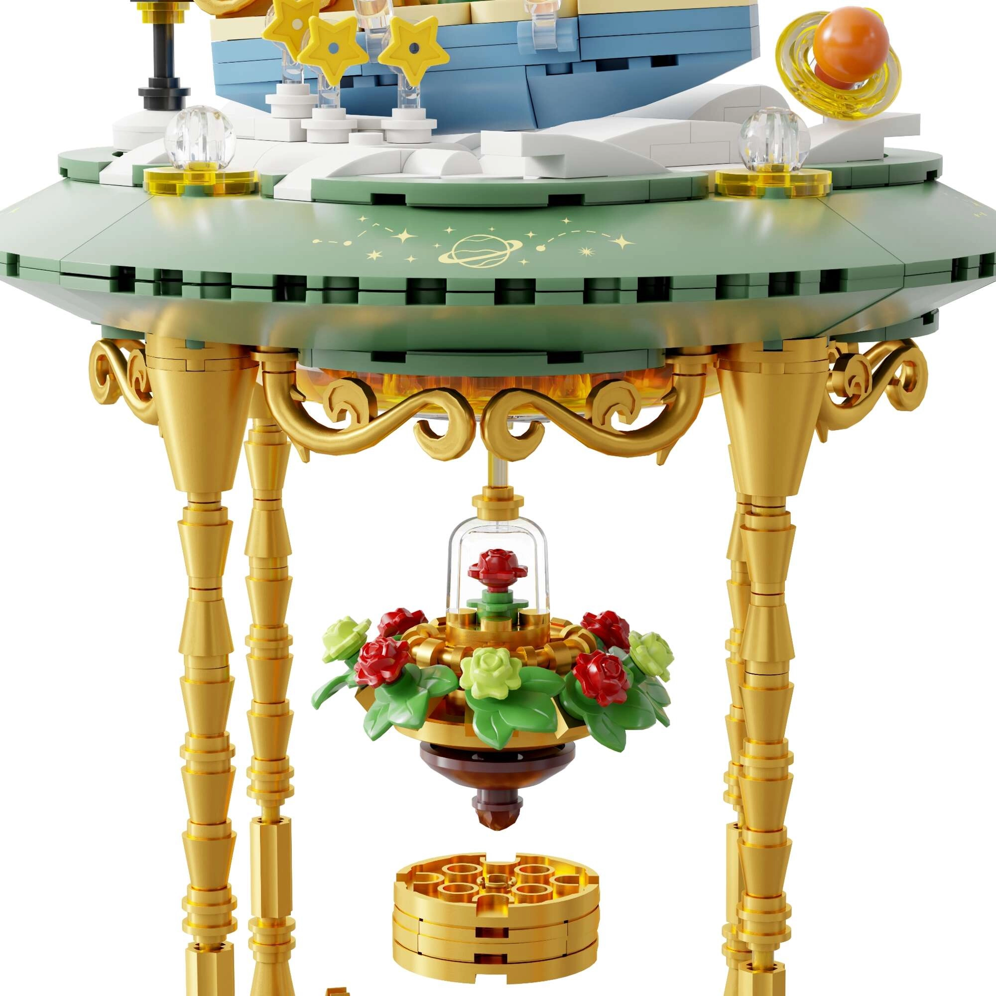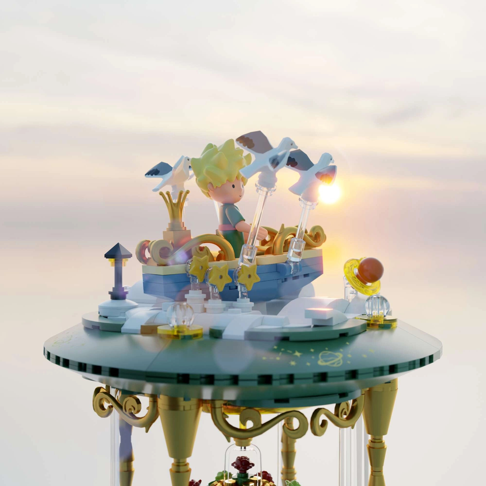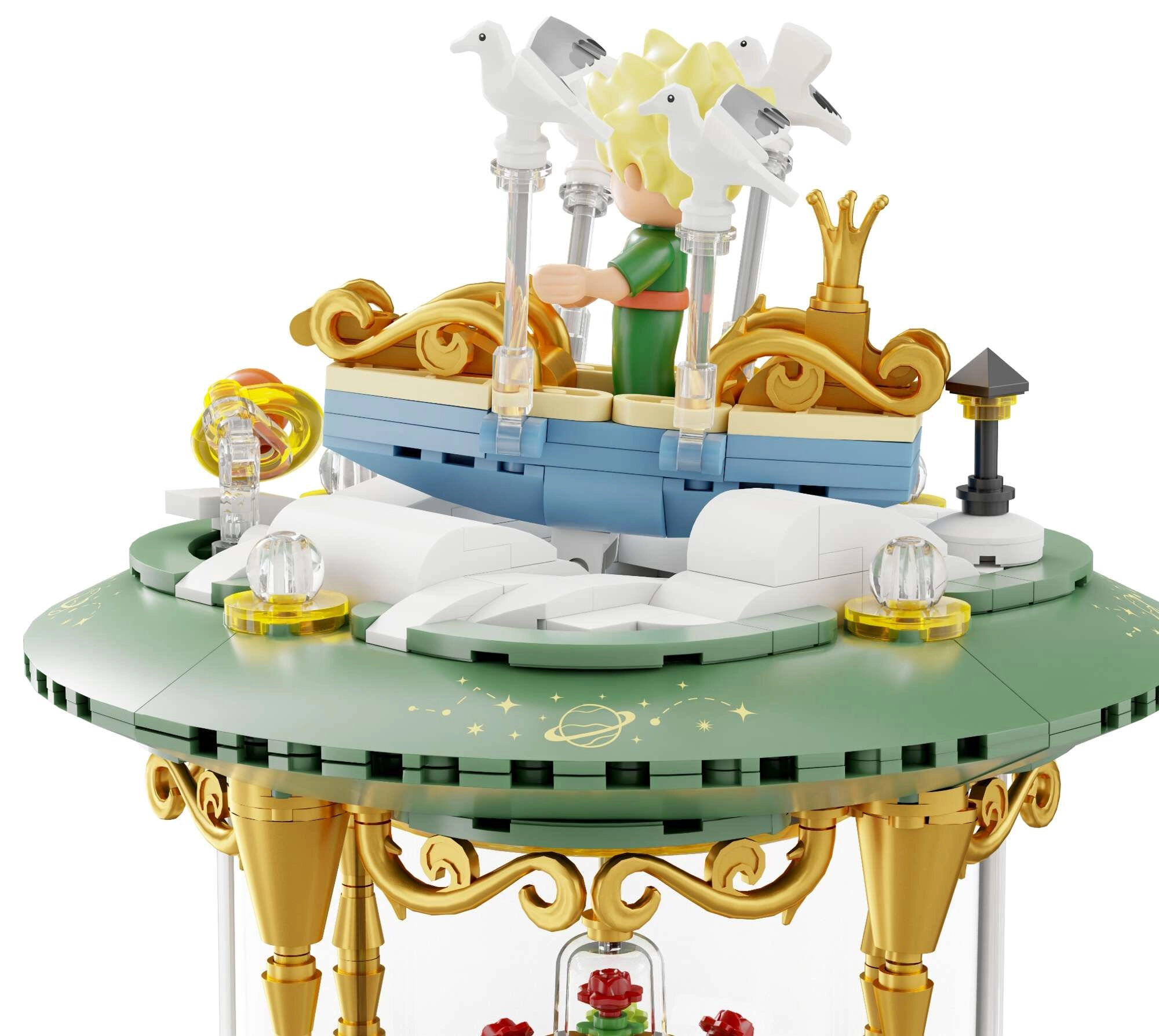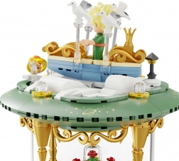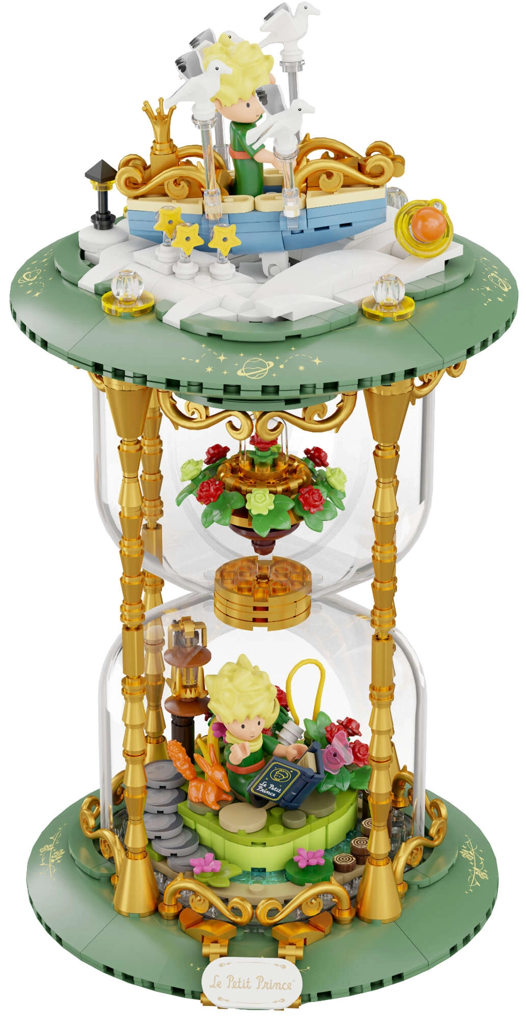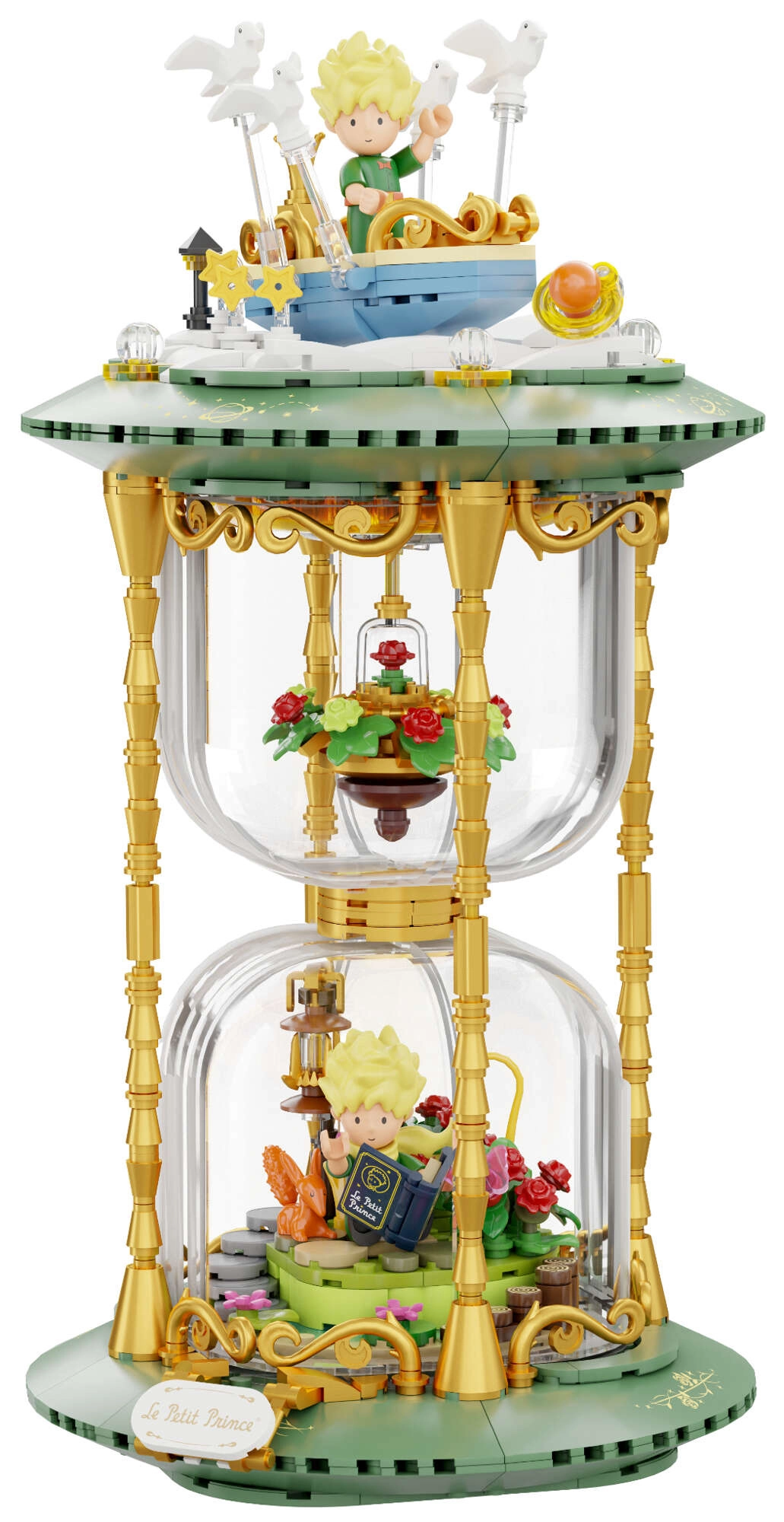 Ez a kiállítási építőkészlet stílusos homokóra formában ötvözi az időtlen mű költőiségét a modern dizájnnal. Zöld talapzatok, arany oszlopok és átlátszó kamrák mini jelenetekkel alkotnak látványos diorámát – A kis herceg, a róka, üveg búra alatti rózsa és csillagos égbolt. A kockák pontos illeszkedésének és a nyomtatott mintáknak köszönhetően a modell hosszú ideig megőrzi tiszta megjelenését.
