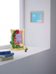 Állíts össze egy hatásos, rózsát és apró részleteket ábrázoló virágos jelenetet keretben. A kész modell stabilan áll, és nagyszerűen mutat lakásdekorációként.