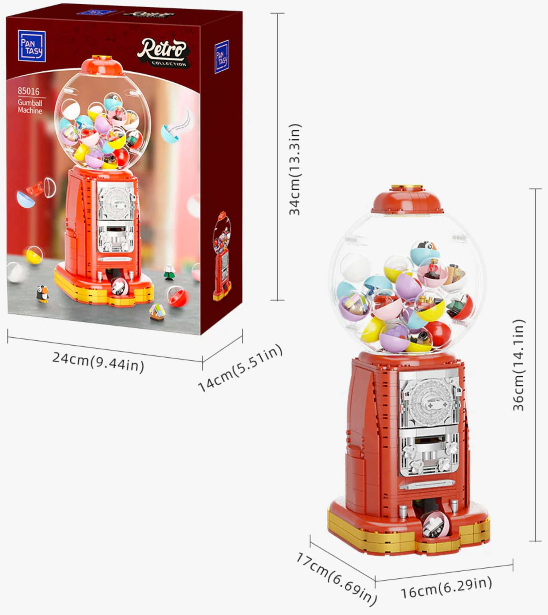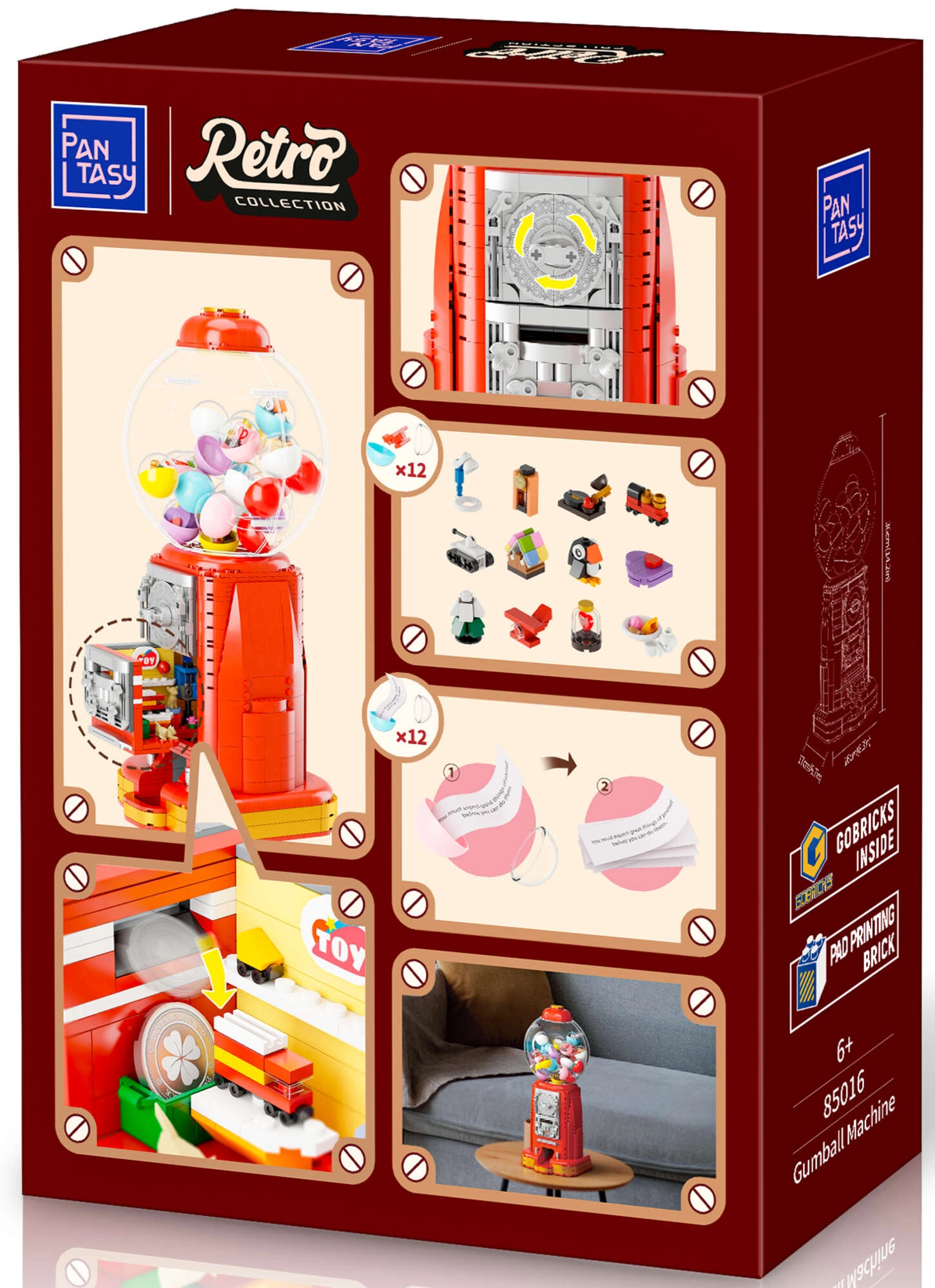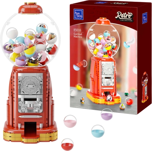 Fedezze fel a nosztalgia varázsát a PANTASY – retro rágógumi-automatával, 936 darabbal. Elegáns, fémesen csillogó részletek, nagy üveggömb és működő érmemechanizmus állítható adagolással – remek gyűjtői darab és egyedi asztaldísz. A csomagban 12 mikro kocka és 12 „szerencseüzenet” a személyre szabott szórakozáshoz, továbbá nyomtatott részletek matricák nélkül és minőségi ABS műanyag található.
