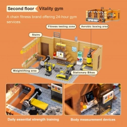- 1. emelet – 24/7 fitnesz: zónák aerobikhoz, küzdősportokhoz, szabad súlyokhoz és spinning kerékpárokhoz.