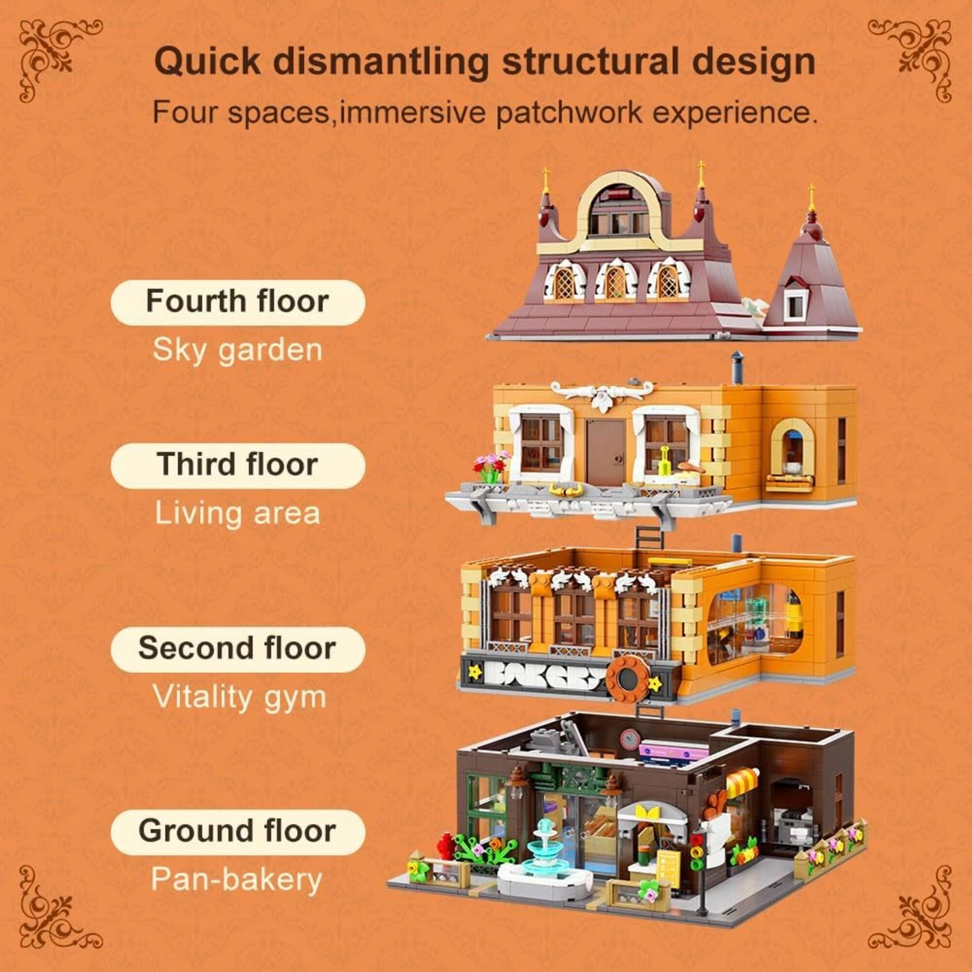 Élvezze az európai építészet által ihletett lenyűgöző modellt. A meleg barna tónusok és az átgondolt részletek autentikus hangulatot teremtenek egy nyüzsgő piactérből – szinte érezni a frissen sütött kenyér és a kávé illatát. A moduláris felépítés lehetővé teszi az emeletek könnyű szétválasztását és átrendezését a maximális kreativitás és kiállíthatóság érdekében.