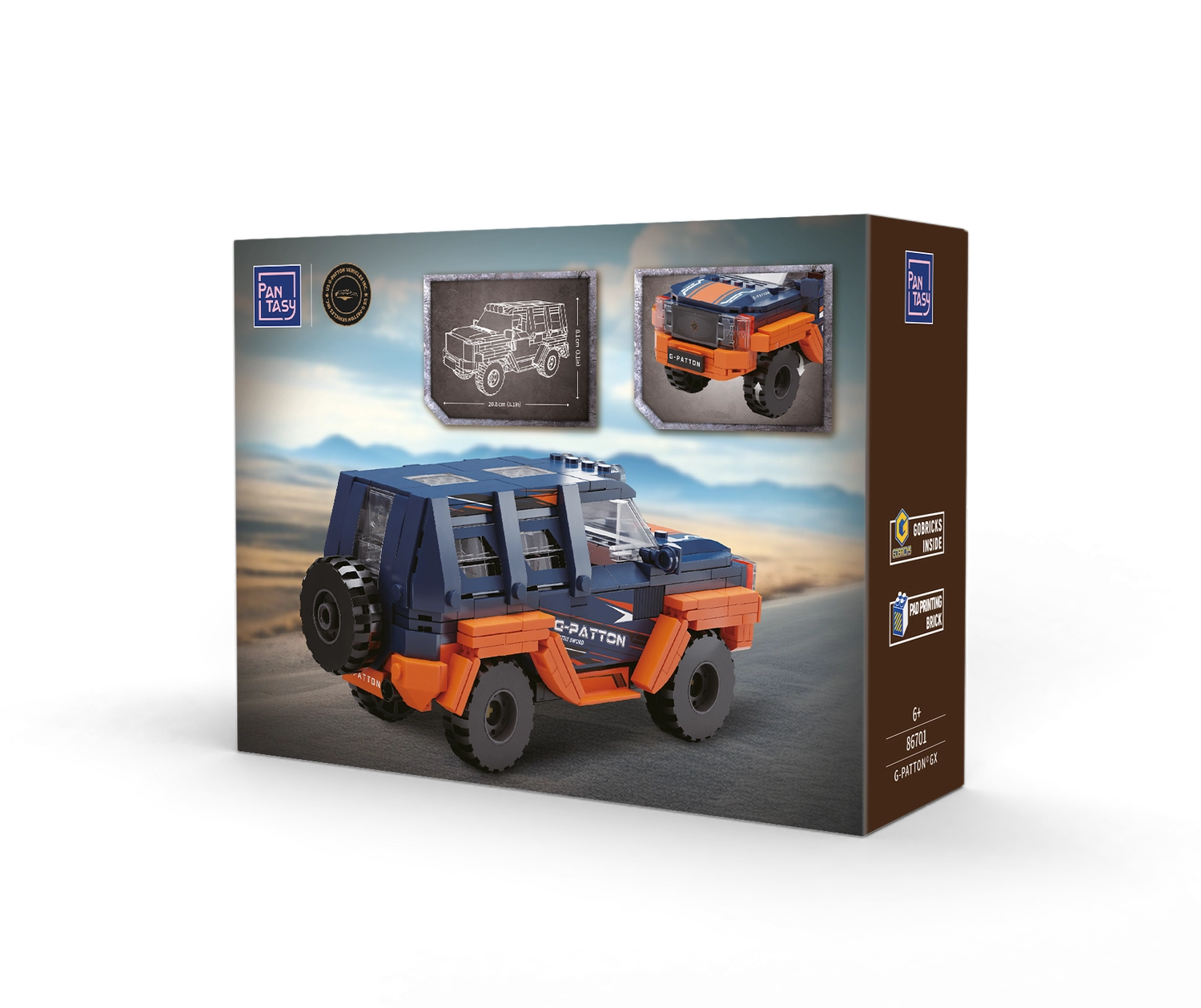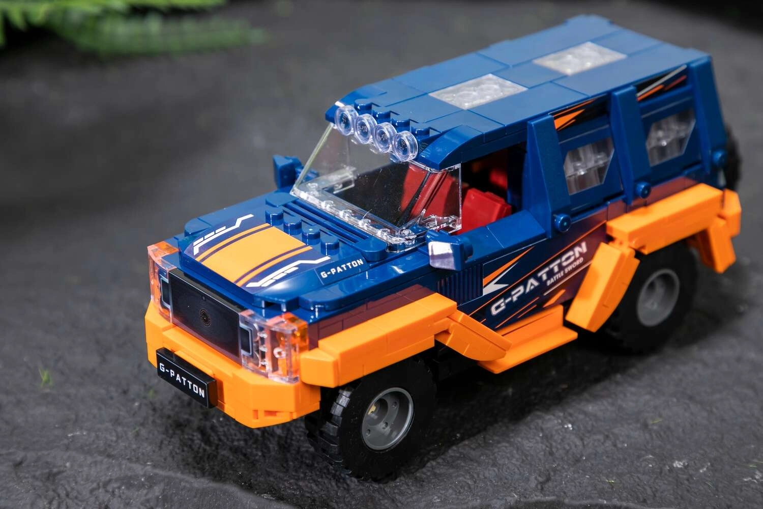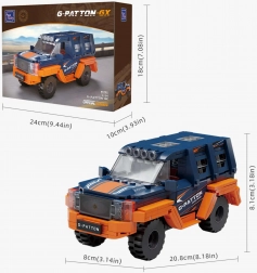 Éld át az építés örömét a PANTASY G‑Patton GX készlettel. A robusztus terepes SUV kék‑narancs dizájnnal, átlátszó ablakokkal, részletes maszkkal és tetőlámpákkal tűnik ki. A minőségi ABS elemek erősen tartanak, a nyomtatott minták pedig hosszú távon szépek maradnak – nincs buborékosodás vagy felválás.