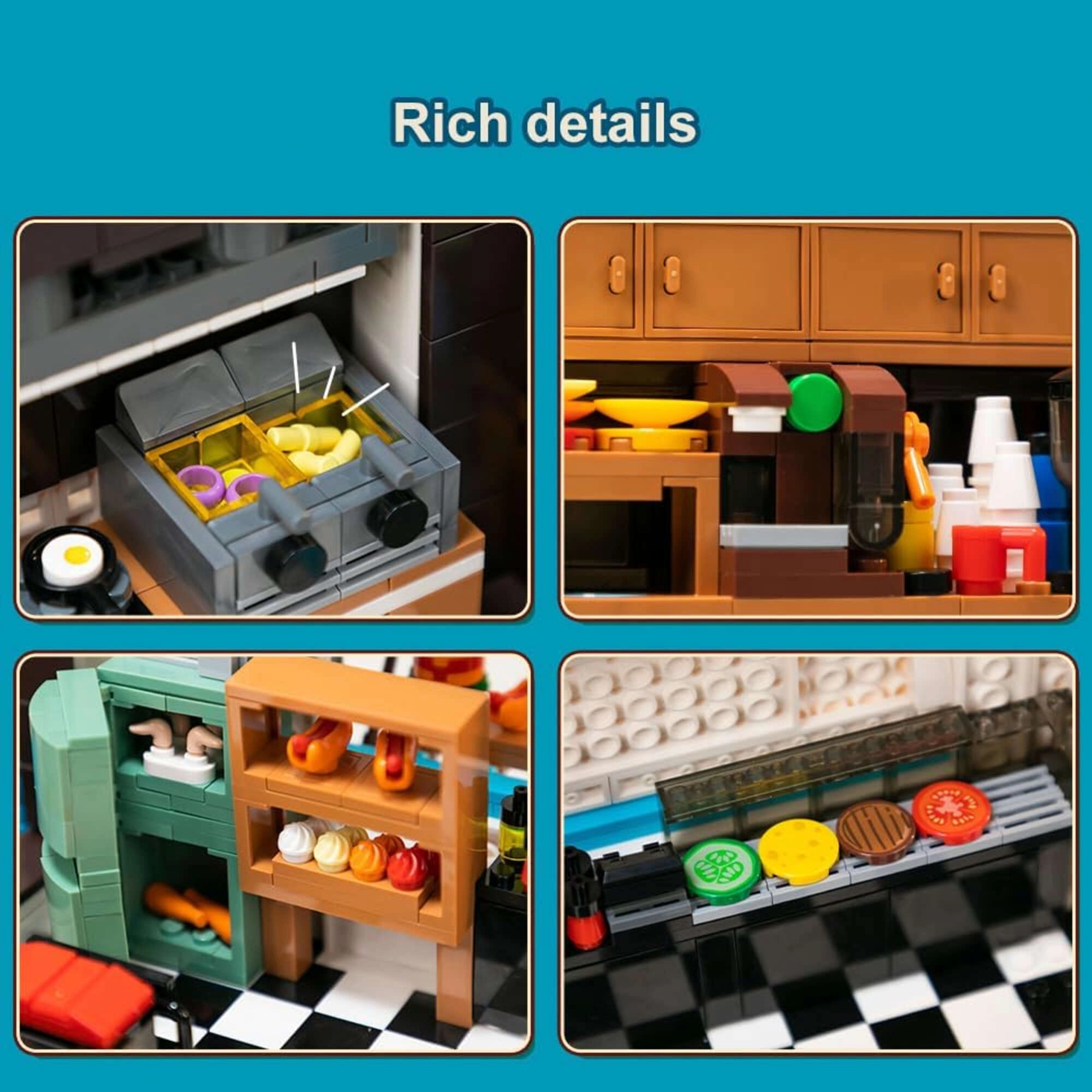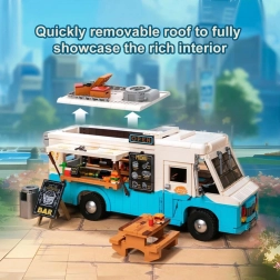 Fedezd fel az illatokkal és fényekkel teli utcák varázsát ezzel a kidolgozott retro food truck modellel. A tető könnyen felnyitható, és láthatóvá válik az autentikus konyha főzőlappal, fritőzzel, sütővel és eszközökkel. A nyomtatott részleteknek köszönhetően a megjelenés tiszta és tartósan látványos marad.