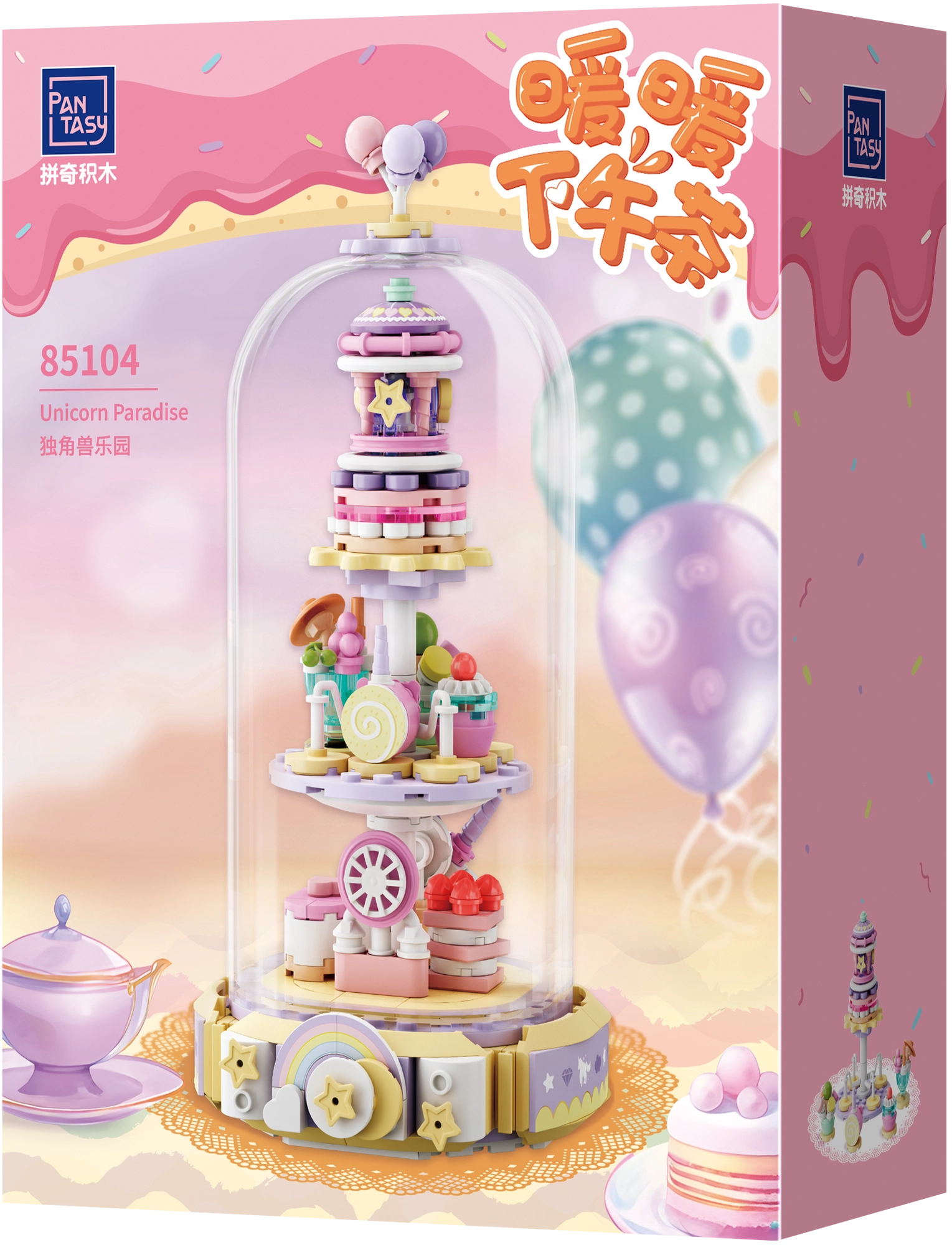 Lépjen be a mesés hangulatba a háromszintes „cukrászdával”, mely tele van egyszarvúakkal, csillagokkal és szívecskékkel. Az átlátszó kupola elegáns kiállítási jelleget ad a modellnek és védi az apró részleteket. A rózsaszín, kék és lila finom árnyalatai elbűvölő dekorációt alkotnak gyerekszobába vagy gyűjtői polcra.