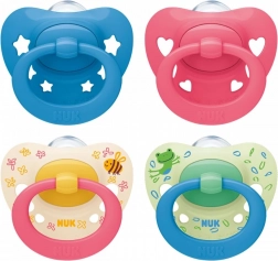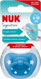 A NUK Signature ortodontikus cumi 6–18 hónapos gyermekeknek támogatja a szájüreg egészséges fejlődését. Még laposabb formája jobb illeszkedést biztosít, minőségi szilikonból és könnyű műanyagból készül. A kék csillag mintás, szív alakú, lekerekített pajzs és a továbbfejlesztett gyűrű kíméletes az érzékeny bőrhöz. Tartozék a strapabíró, újrahasználható doboz, amely mikrohullámú sütőben történő higiénikus tisztításhoz is alkalmas. BPA-mentes.
