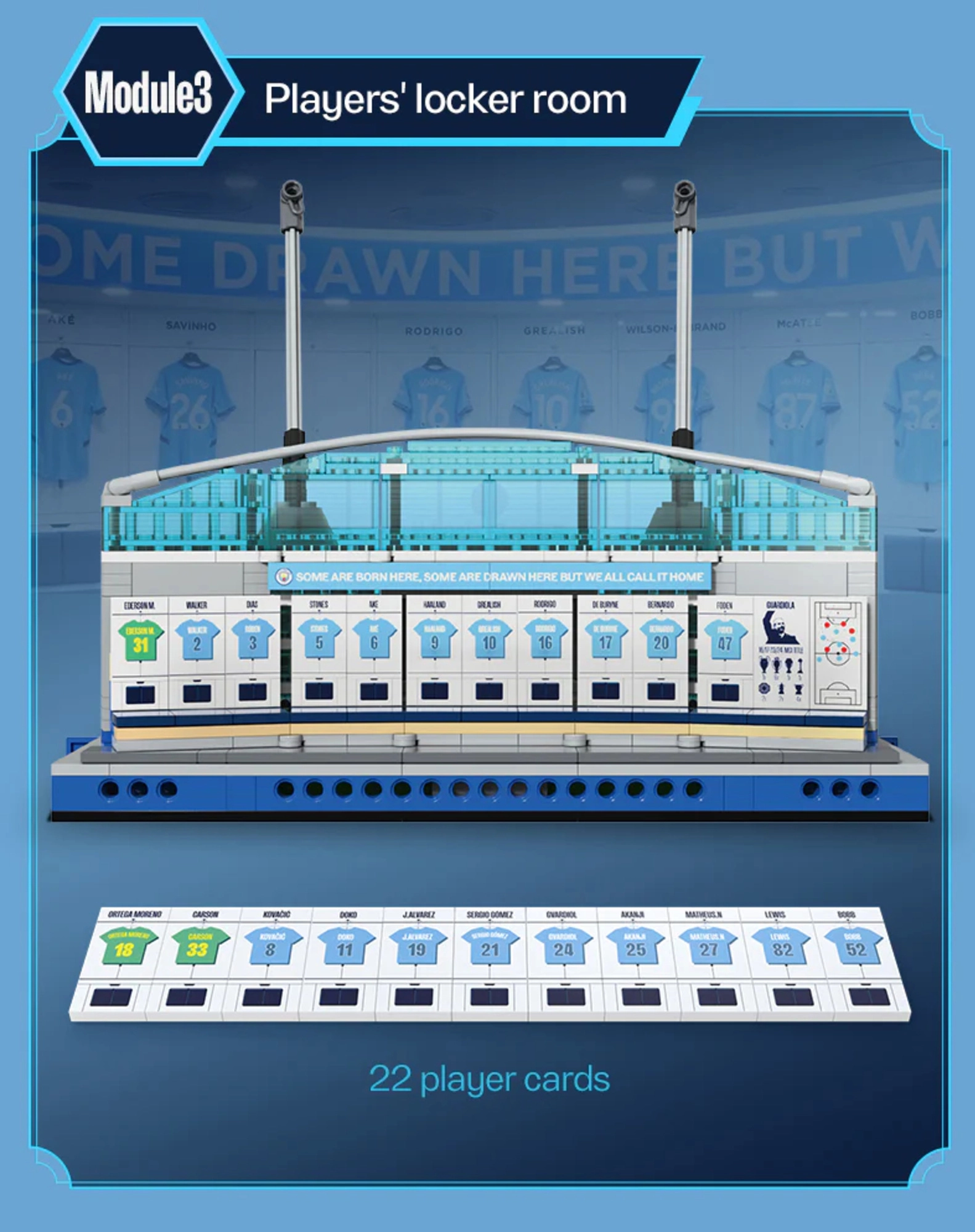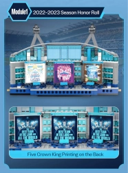 A moduláris megoldás lehetővé teszi a öltöző és a hall of fame külön összeállítását, így a modellt nemcsak az építés, hanem a nézegetés és a kiállítás során is élvezheted. A mellékelt LED világításnak (USB) köszönhetően kiemelkednek a stadion jellegzetes vonalai, a modell pedig a gyűjteményed feltűnő dekorációja lesz.