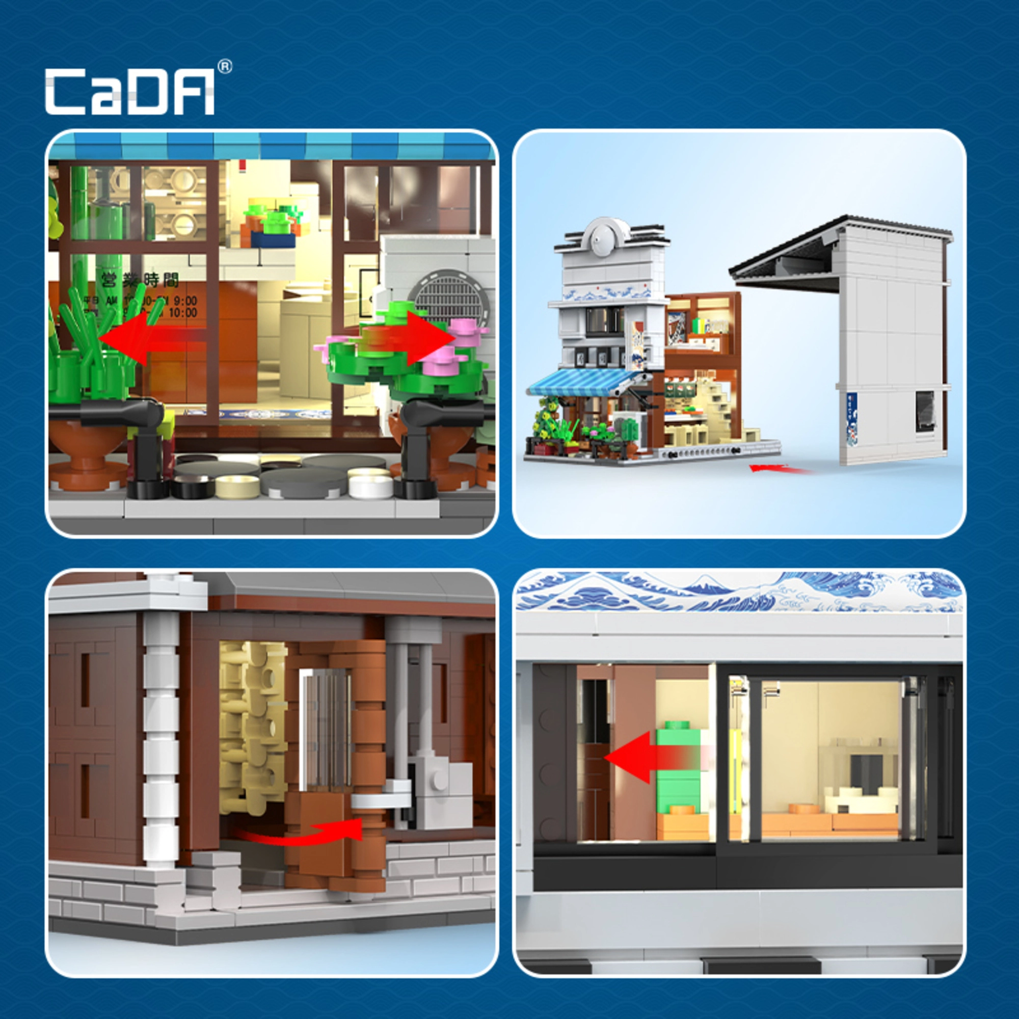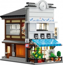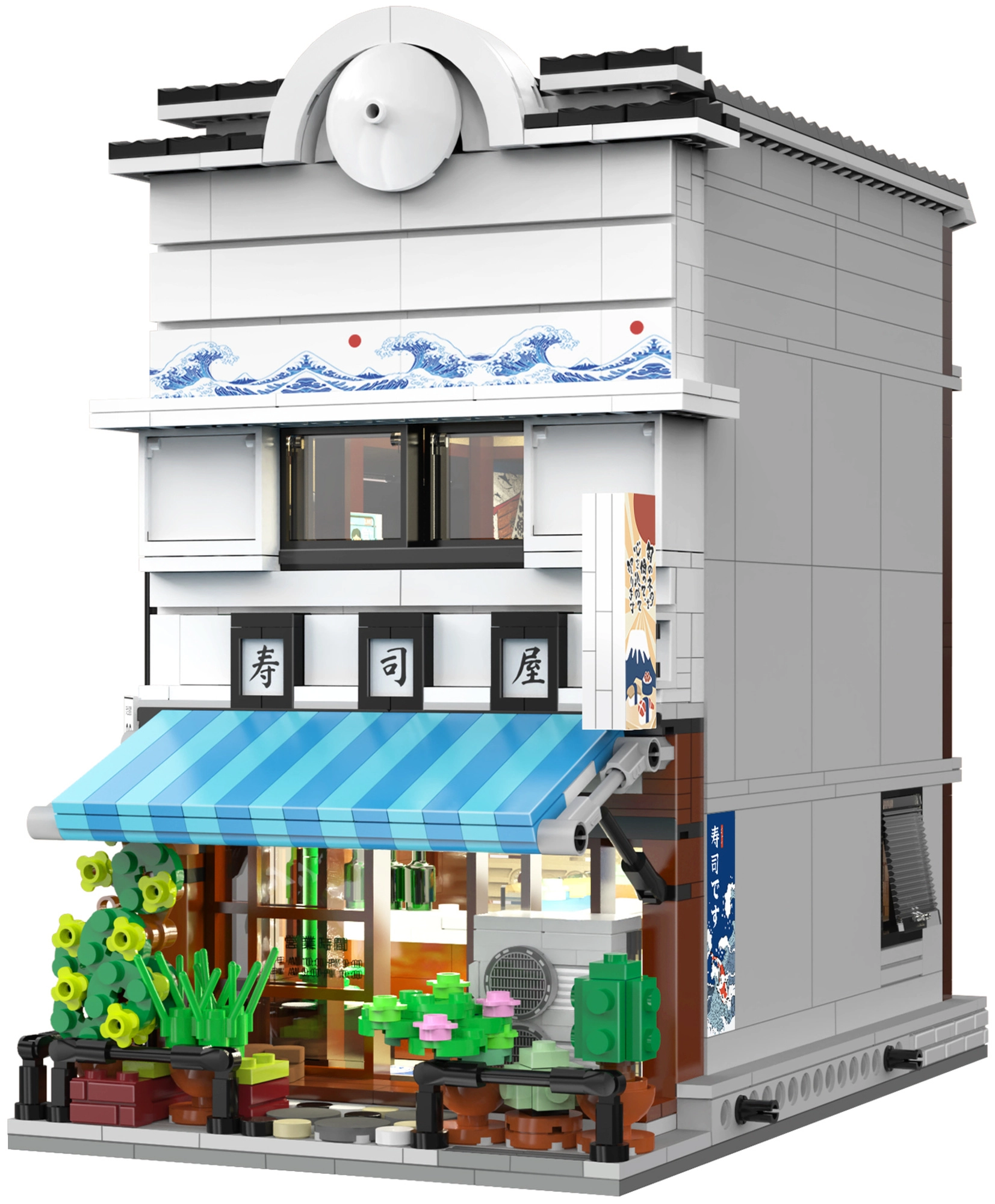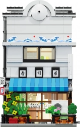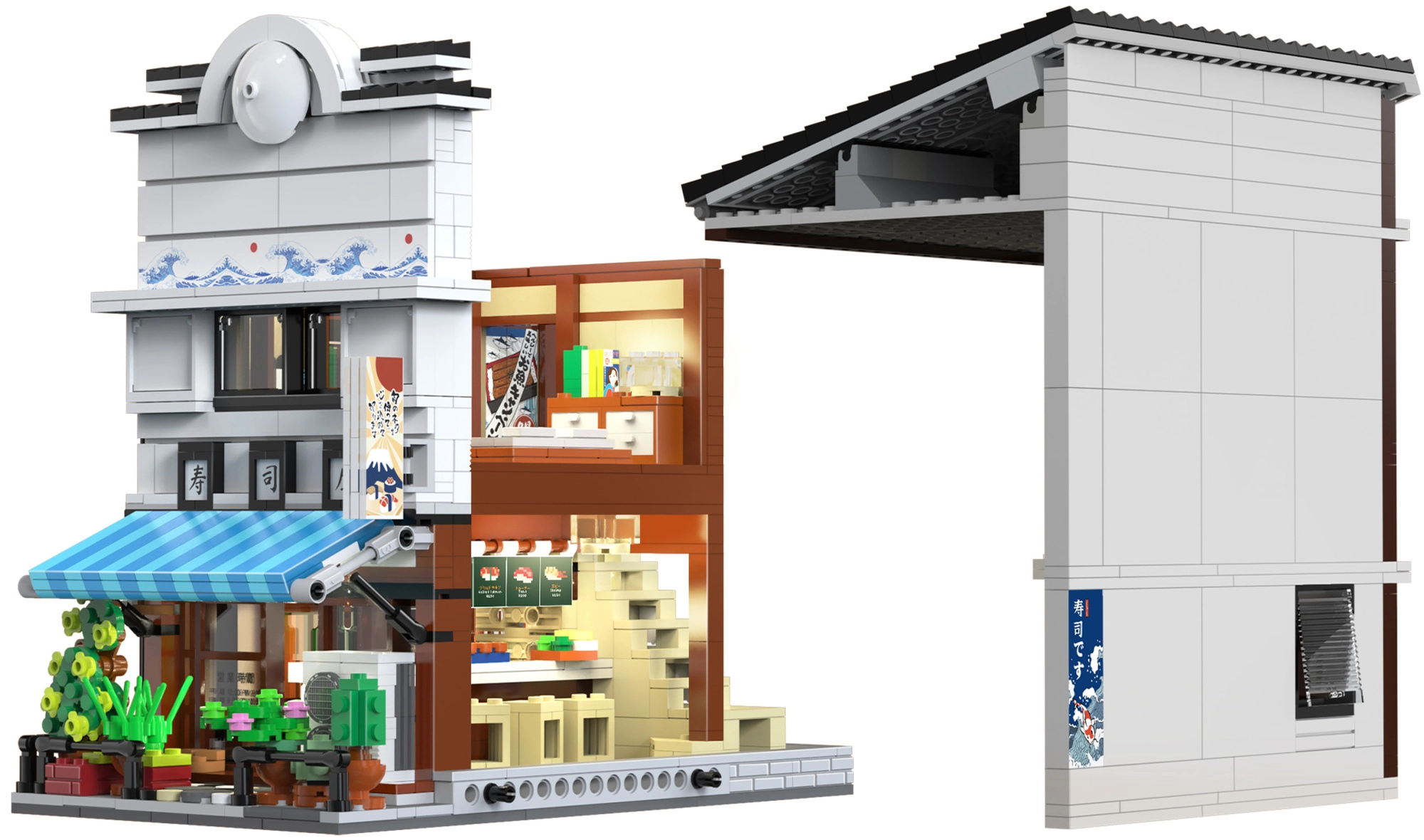 Ez a design építőkészlet egy autentikus, két szintes japán sushi üzletet hoz el, nagy hangsúlyt fektetve a belső és külső részletekre. A nyitható kialakításnak köszönhetően könnyű belenézni – talál itt bárszékeket, dekoratív bambuszt, lépcsőt, valamint egy hangulatos emeleti szobát ággyal, televízióval és komóddal.
