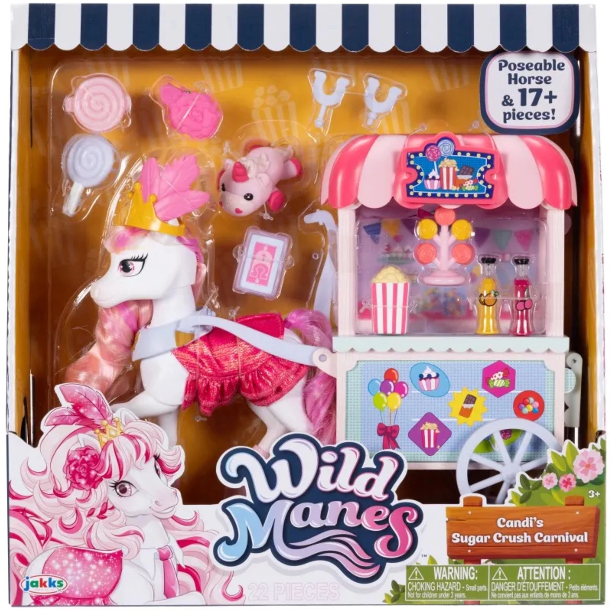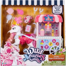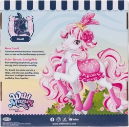 Candi unikornis elbűvöl fehér testével, rózsaszín sörényével és farkával, csillogó koronájával és stílusos ruhájával. A mozgatható végtagoknak köszönhetően a figura könnyen különböző pózokba állítható, így újraélhetők a WILD MANES világának kedvenc jelenetei.