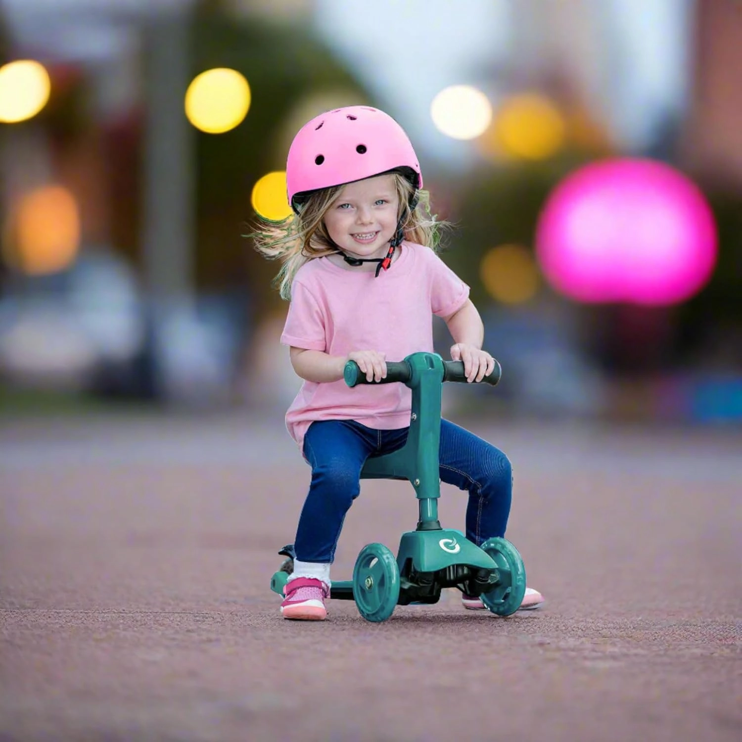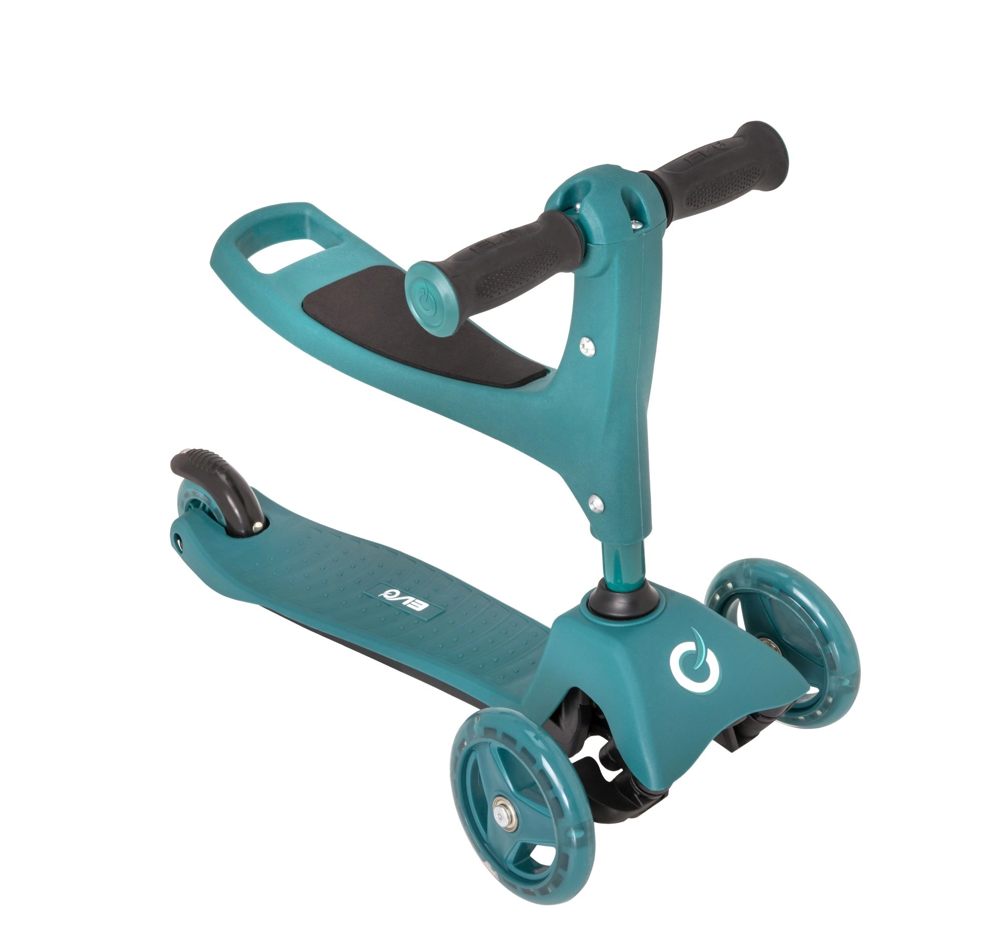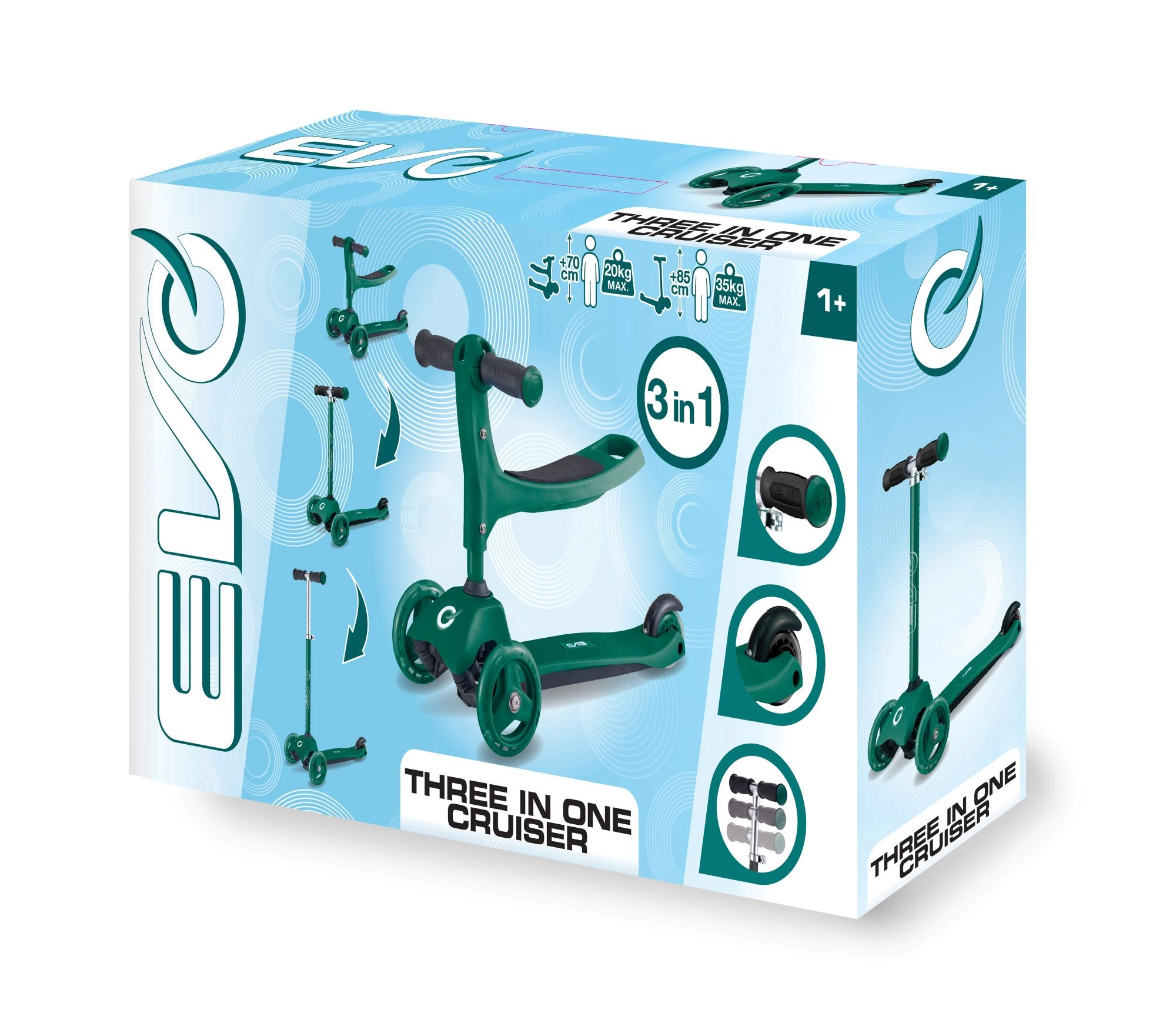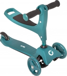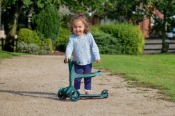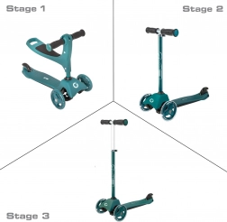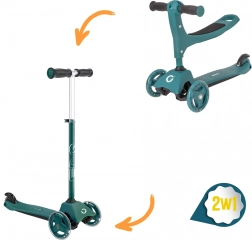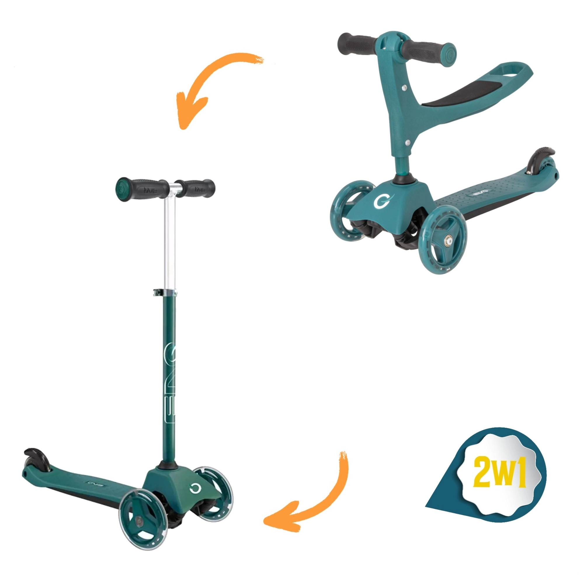 Ez az okos 2 az 1-ben háromkerekű roller pillanatok alatt átalakítható üléses futóbicikliről klasszikus rollerré. A állítható kormánynak köszönhetően (kb. 40 cm futóbicikli módban és 62–72 cm roller módban) együtt nő a gyerekkel, és magabiztosságot ad az első gurulásoktól a lendületesebb haladásig.
