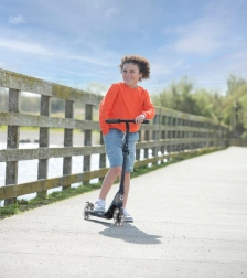 Könnyű magasságállítás a gyermek termetéhez. Az ergonomikus TPR markolatok kényelmes, csúszásmentes fogást biztosítanak hosszabb utak során is.