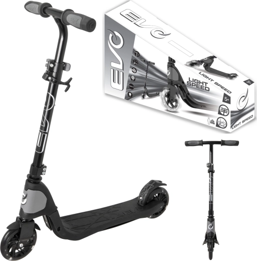 Gyors összecsukás hordozáshoz vagy tároláshoz. Az EVO logós, csúszásmentes deck felület növeli a stabilitást és a magabiztosságot az elrugaszkodáskor.