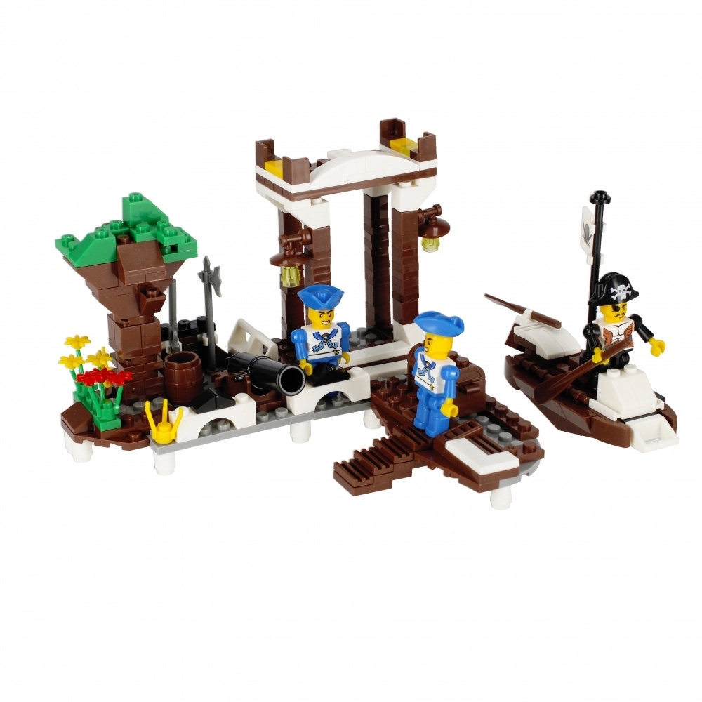 Az elemek kompatibilisek a legtöbb hasonló építőkészlettel – építs nagyobb kikötőt, flottát vagy teljes kalózerődöt.
