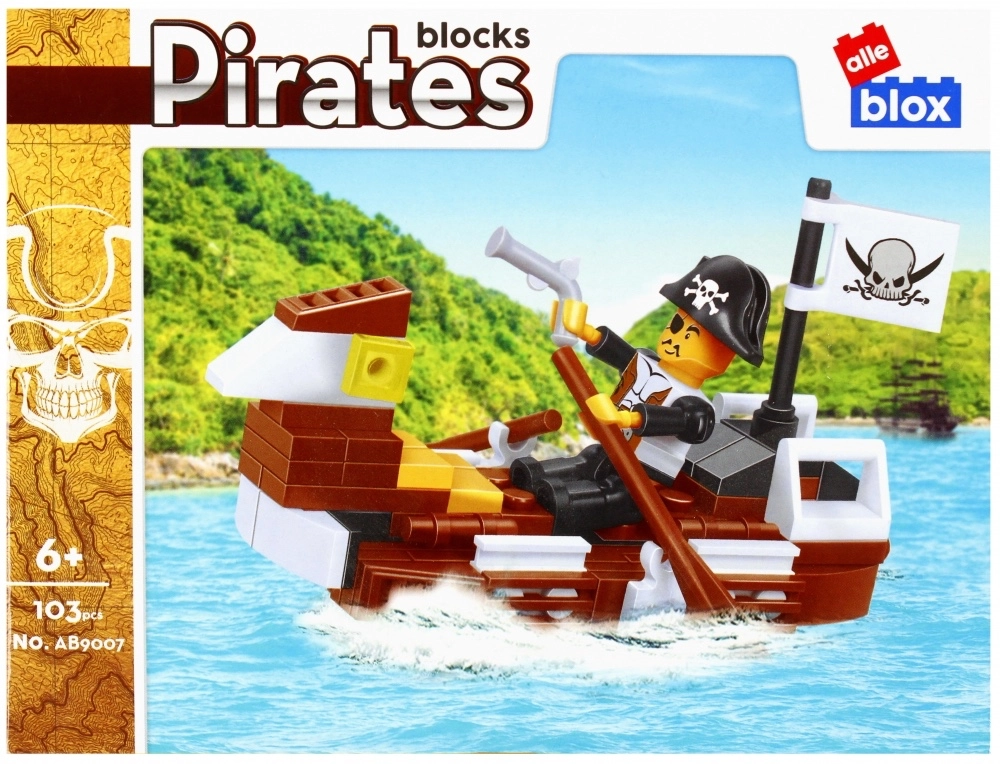 Ez a kalózos építőkészlet órákon át tartó kalandot kínál a tengeren és a szárazföldön. Minden csomagban 96–103 tartós műanyag kockát, figurát/figurákat és tematikus kiegészítőket találsz, mint például ágyúk, zászlók, evezők, lámpások vagy növények. A mellékelt szerelési útmutató megkönnyíti az építést, így a gyerekek hamar megalkothatják saját kalóz jeleneteiket.