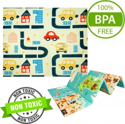 A prémium XPE hab kiváló rugózást, hőszigetelést a hideg padlótól és hosszú élettartamot biztosít szagok és toxikus anyagok nélkül. A szőnyeg könnyű, összehajtható és kétoldalas, így egyszerűen áthelyezhető, tárolható és az aktuális játékhoz igazítható. A csúszásgátló textúra támogatja a biztonságos kúszást és első lépéseket, miközben finoman stimulálja az érzékelést.