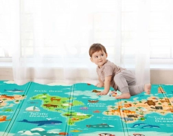 A dizájn a játékon keresztüli tanulást segíti: a világtérkép óceánokkal, kontinensekkel és állatokkal felkelti a gyerekek kíváncsiságát a földrajz iránt, míg a utcák kisautókkal és épületekkel erősítik a fantáziát és a kreatív játékot. A szőnyeg vízálló és higiénikus – elég nedves törlőkendővel áttörölni, nem vonzza a port, és allergiások számára is megfelelő.