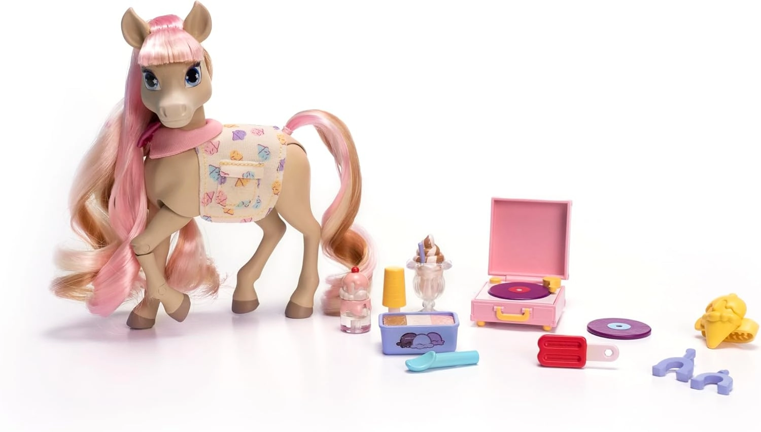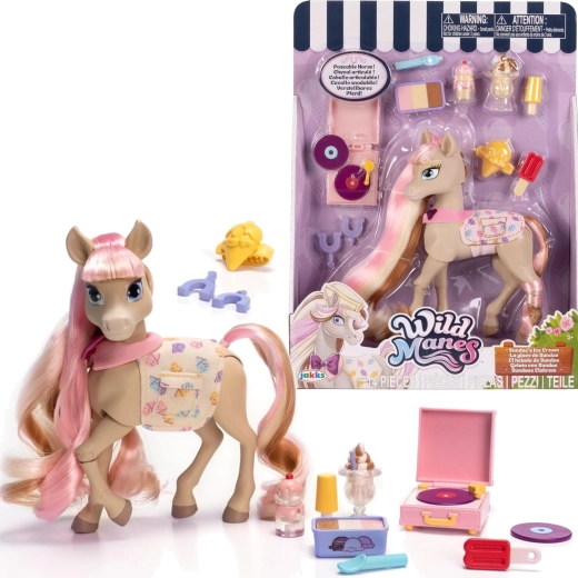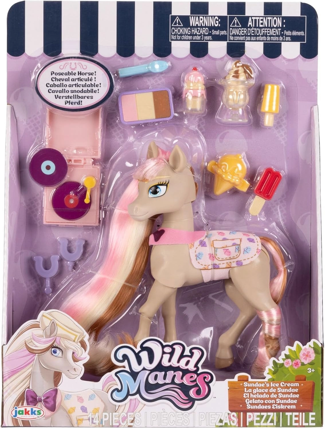 A Sundae ló neapolyi árnyalatú sörénycsíkjaival és pasztell színvilágával varázsol el, felidézve az édességek világát. A csuklós mellső lábaknak köszönhetően bájos pózokra és a fagylaltfinomságok „felszolgálására” is képes. A hosszú sörény egyenesen hív a fésülésre és díszítésre, miközben a mókás kiegészítők végtelen jelenetekhez nyitnak kaput a WILD MANES sorozat Mane Lane kisvárosából.
