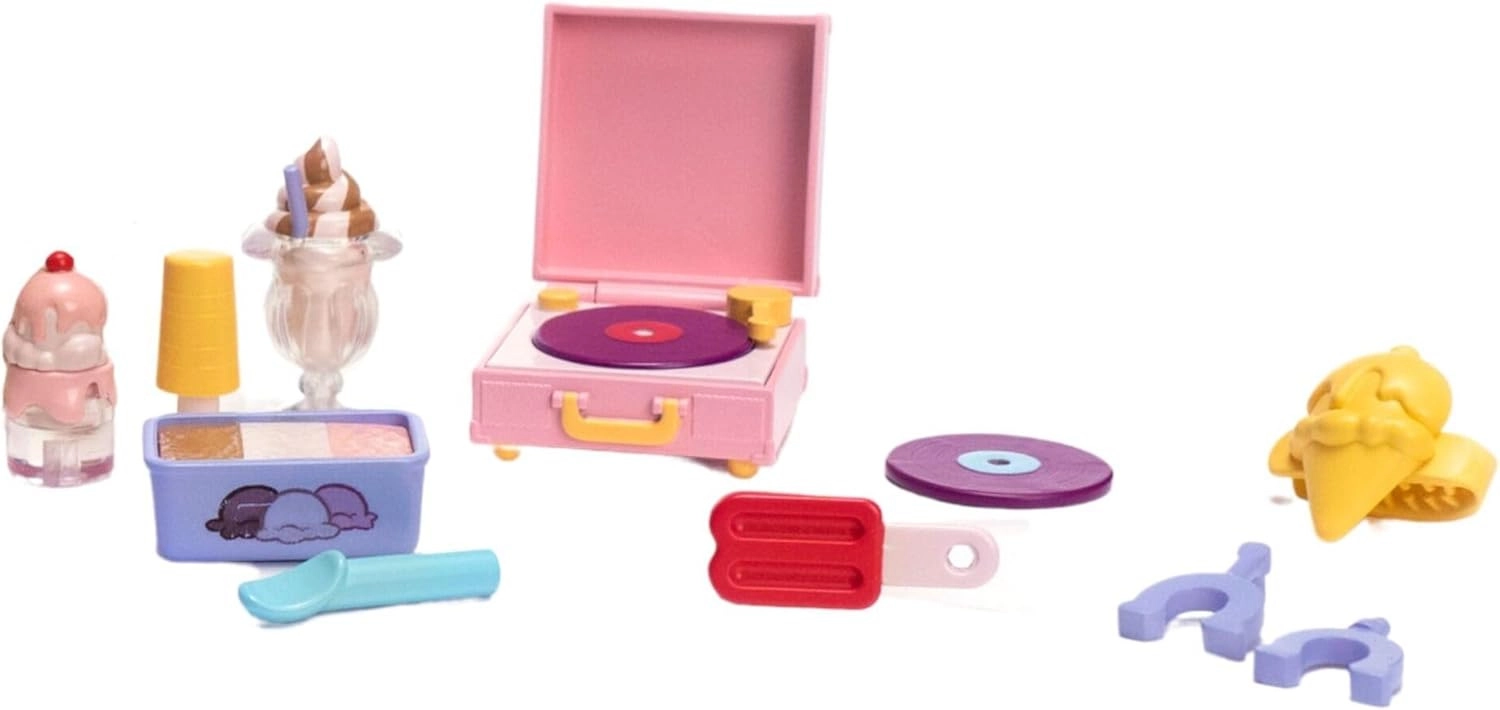 A szett része egy retro gramofon „lemezekkel”, ami stílusos hangulatot kölcsönöz a játéknak. A gyerekek különféle „fagyikat”, kelyheket és apróságokat kombinálhatnak, hogy megalkossák saját cukrászkalandjaikat. Tökéletes ajándék 3 éves kortól, és remekül bővíti a figuragyűjteményt.