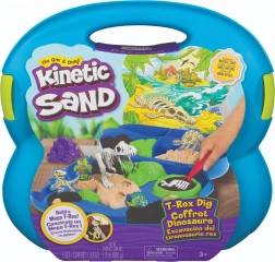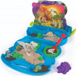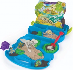 Fedezze fel a dinoszauruszok világát a hordozható készlettel, amely kinetikus homokot és T‑Rex csontvázat tartalmaz. A gyerekek áshatnak, formázhatnak és saját őskori jelenetet alkothatnak a praktikus tálcában. A kinetikus homok nem ragad, nem koszol, és soha nem szárad ki, ezért ideális az otthoni kreatív játékhoz. A csomag részeinek formák, eszközök, karton hátterek és figurák biztosítanak órákon át tartó szórakozást és tanulást.