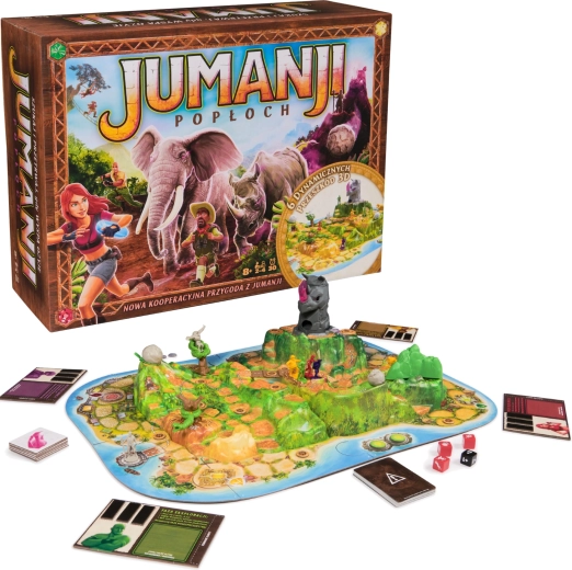 Merülj el a legendás JUMANJI világában, és élvezd a csapatjátékot, ahol a kommunikáció, a taktika és a jó időzítés dönt. Nézzetek szembe a kavargó kígyókkal, a száguldó kőgolyóval és a dzsungel további csapdáival, miközben együtt véditek az utat az Orrszarvú-hegyhez. A cél, hogy 5 kristályt gyűjtsetek össze, mielőtt a gazfickó keresztülhúzza a számításaitokat.