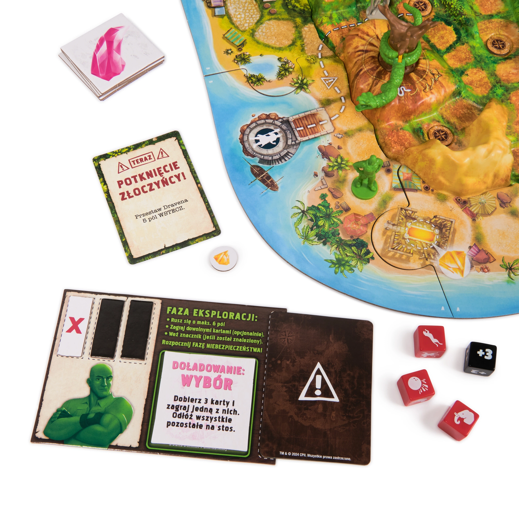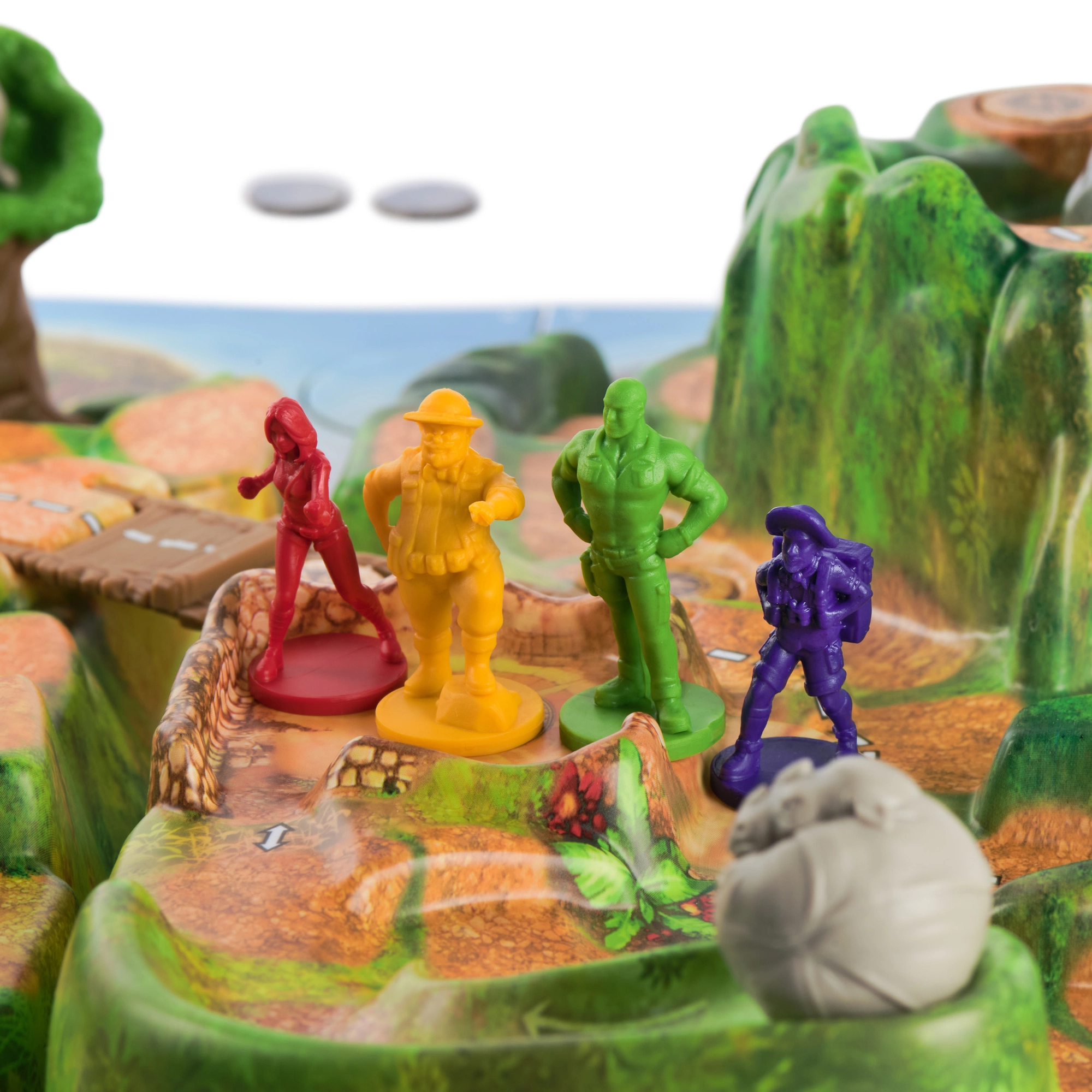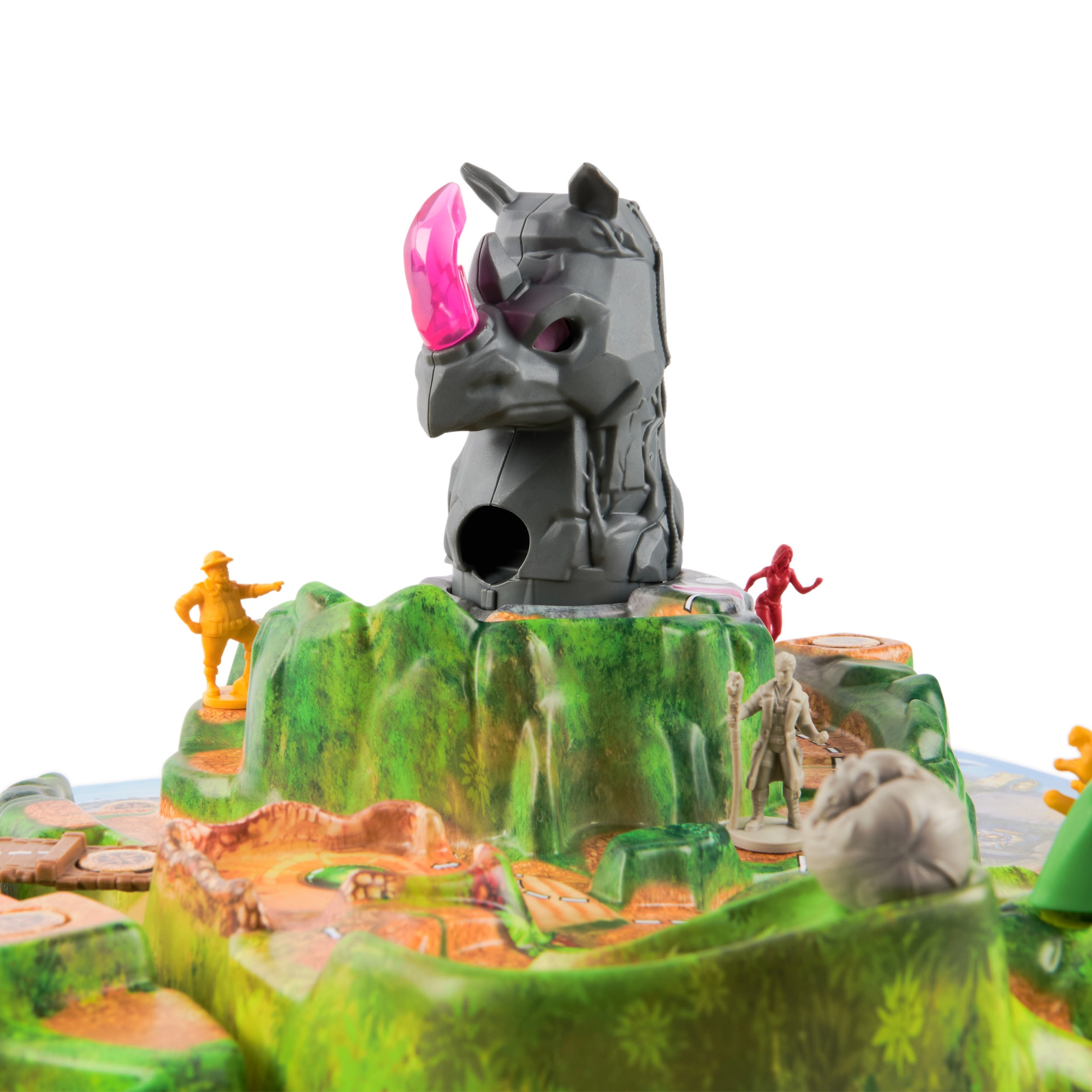A játéktábla központi eleme a látványos 3D Orrszarvú-hegy kristályszerű szarvval. Az emelt terep, hidak és ösvények magával ragadó kalandot és jól követhető játékmenetet teremtenek.
