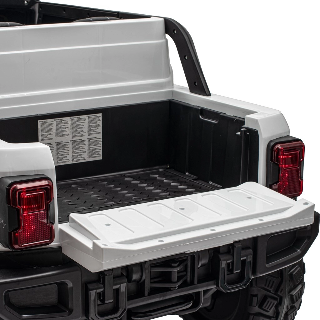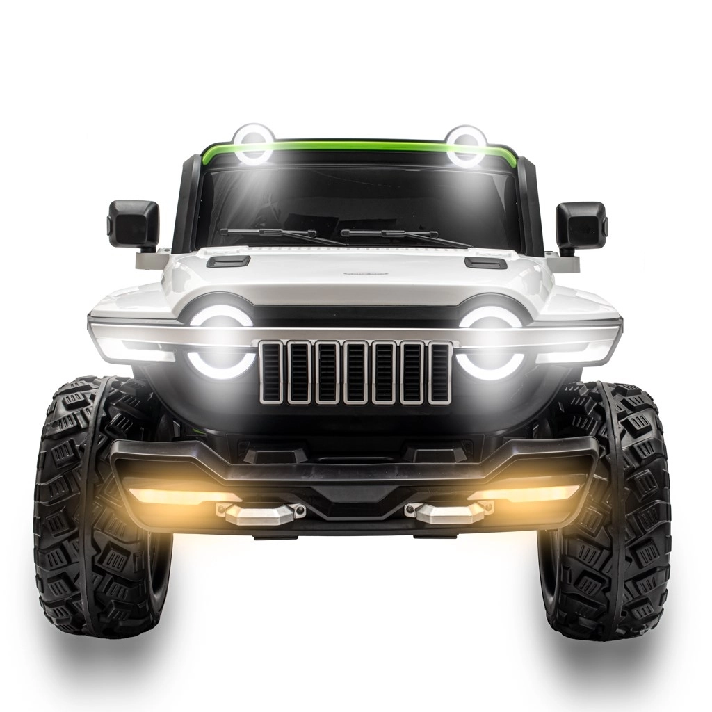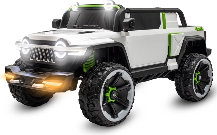 A nagy teljesítményű 12 V-os akkumulátor két 45 W-os motort táplál, amelyek a soft start funkcióval rángatásmentes, finom indulást tesznek lehetővé. A biztonságos irányítást lábfék és 3 sebesség beállítás támogatja. A szülők értékelni fogják a 2.4G-s távirányítót, míg a gyerekek élvezhetik a LED világítást, a beépített meséket és zenét, valamint a saját fájlok csatlakoztatásának lehetőségét USB-n keresztül.