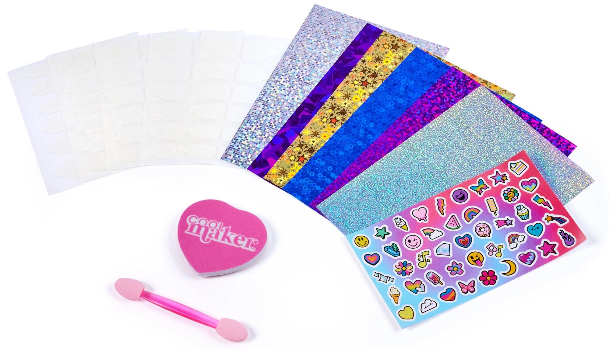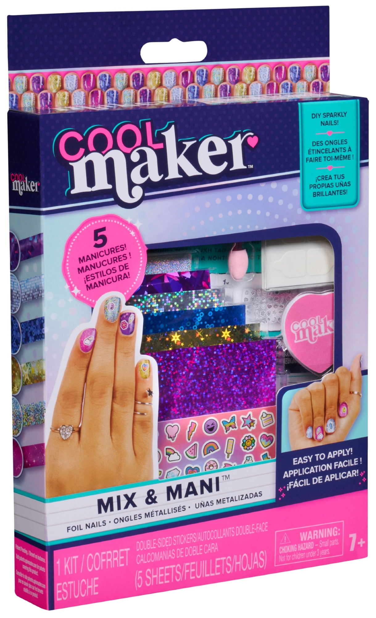 Kreatív kiegészítő kis stylistáknak a Spin Master márkától: a Cool Maker Mix & Mani egy kis kiegészítő körömdíszítő szett, amely egyszerű és szórakoztató alkotást kínál. Csak helyezze fel a ragasztós sablont, nyomja rá a választott mintát, ragassza fel a matricát, és kész is. A minták könnyen cserélhetők, és bármikor újrakezdhető a díszítés, így garantált a végtelen kreatív szórakozás.