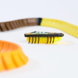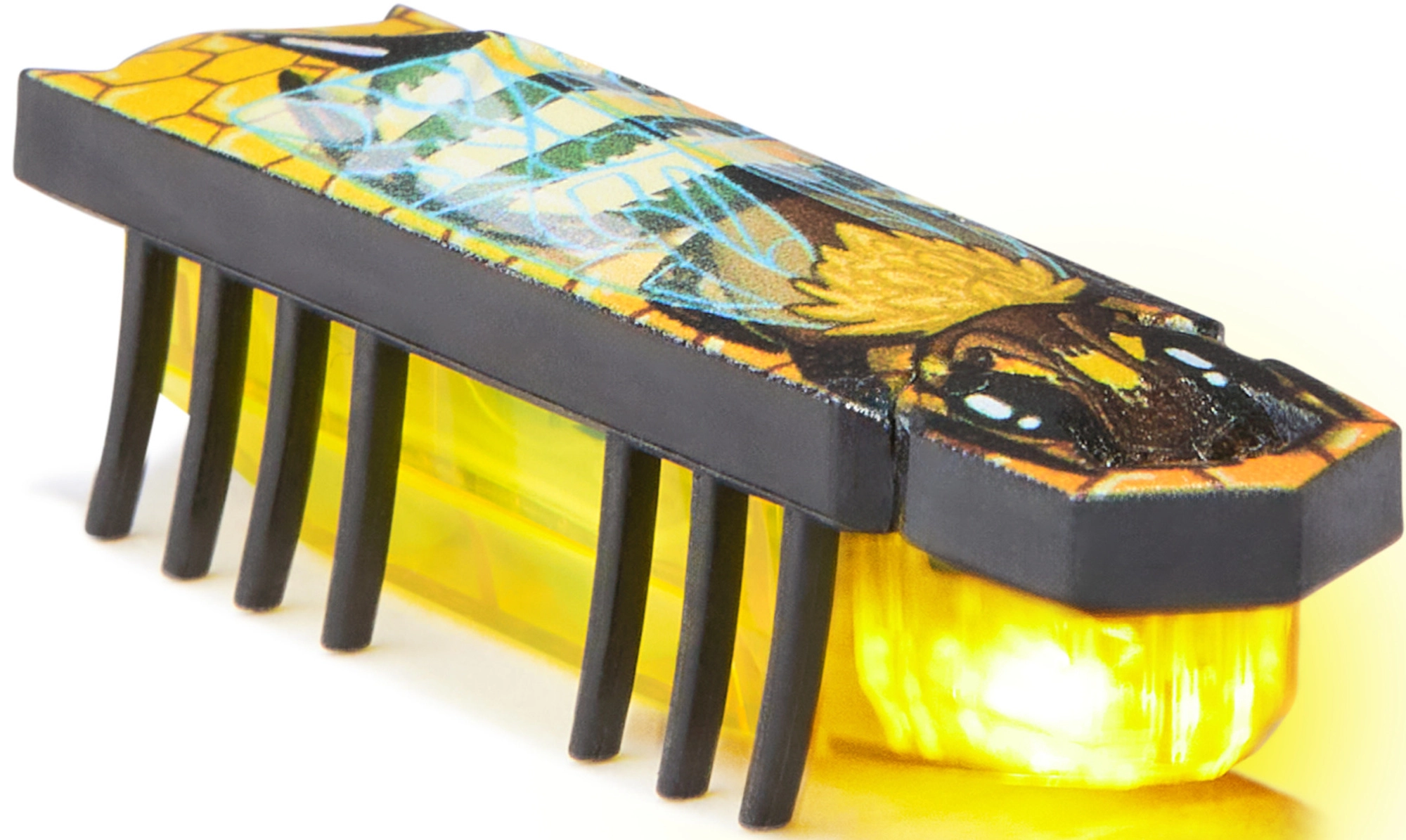 Áttetsző sárga testű mikrorobot világít, és a rezgéseknek köszönhetően fürgén „szaladgál” a pályán és a sík felületeken is. A látványos fényhatások játékra csábítanak.