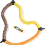 A HEXBUG NANO FLASH kezdőkészlet pörgős akciót hoz zsebméretben. A bogár áttetsző sárga teste felvillan, a sok rugalmas láb minden irányba mozgásba lendíti, és te figyeled, ahogy a bogár ösztönösen utat tör magának a pályán. A hajlékony falvezető elemeket egyszerűen a csatlakozókba pattintod, és pillanatok alatt új útvonalakat és formákat hozol létre – az ívektől a kanyargó folyosókig.