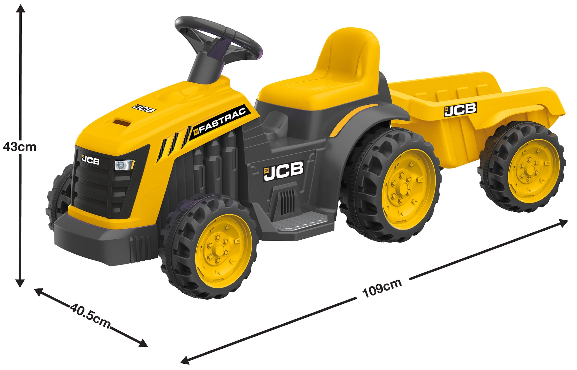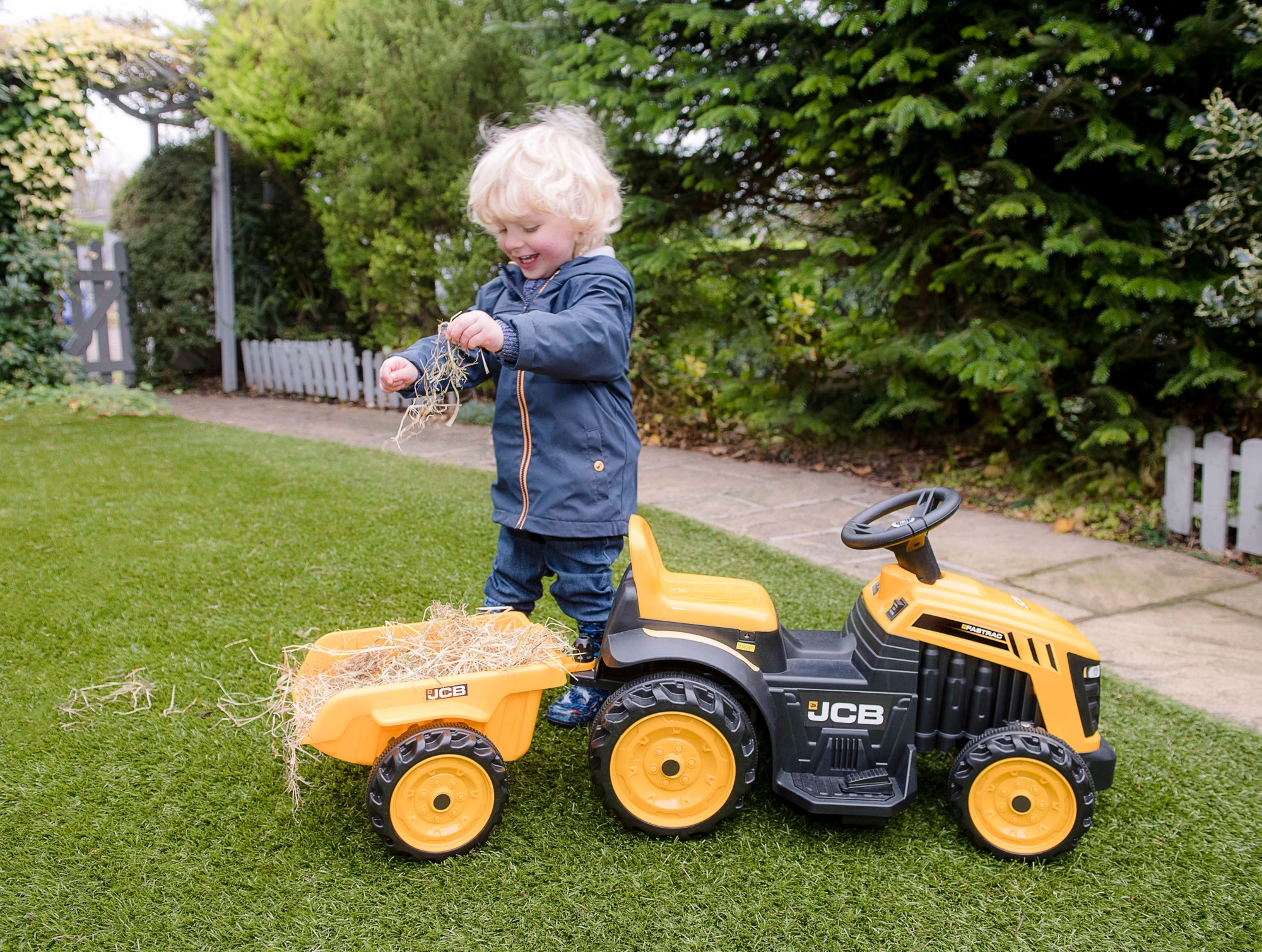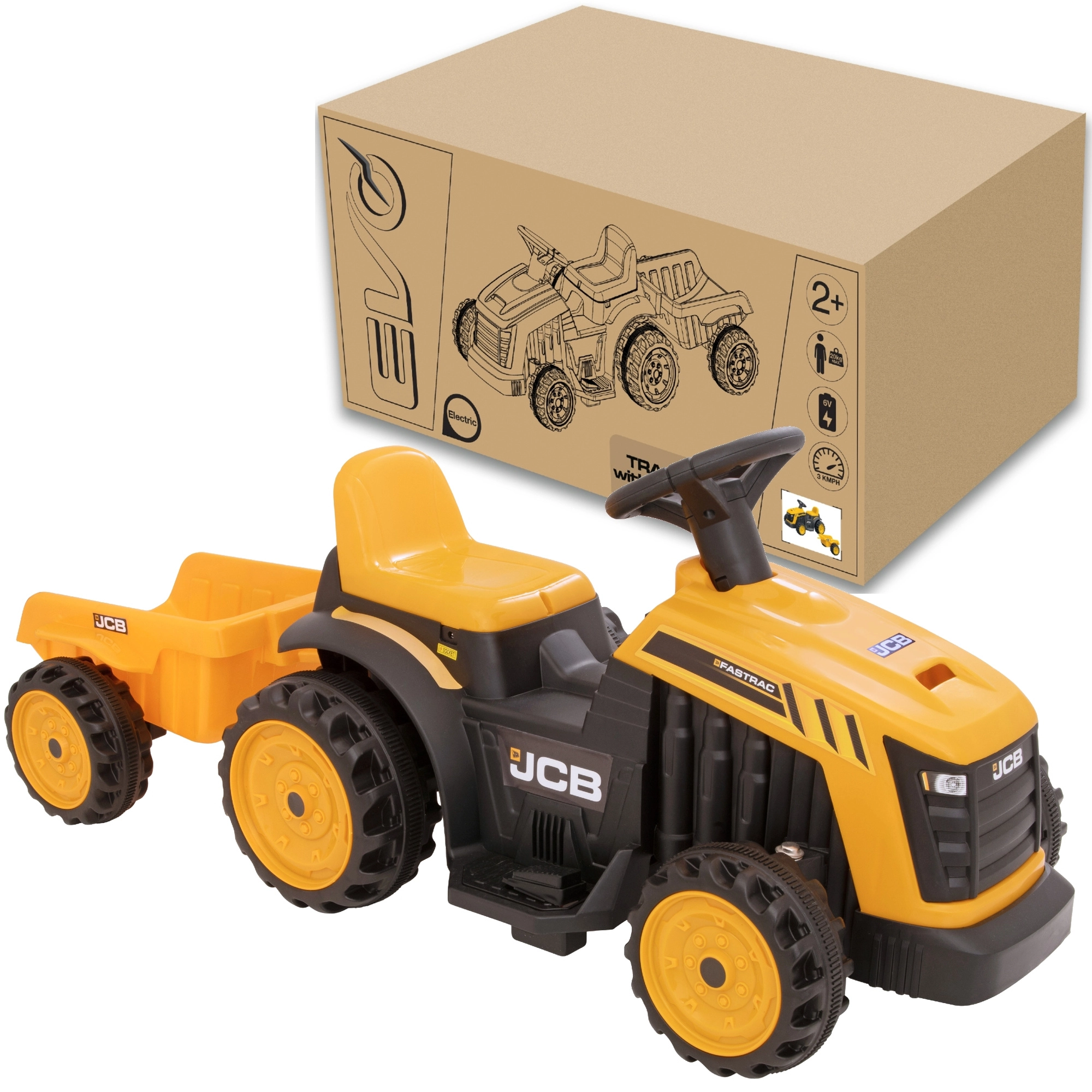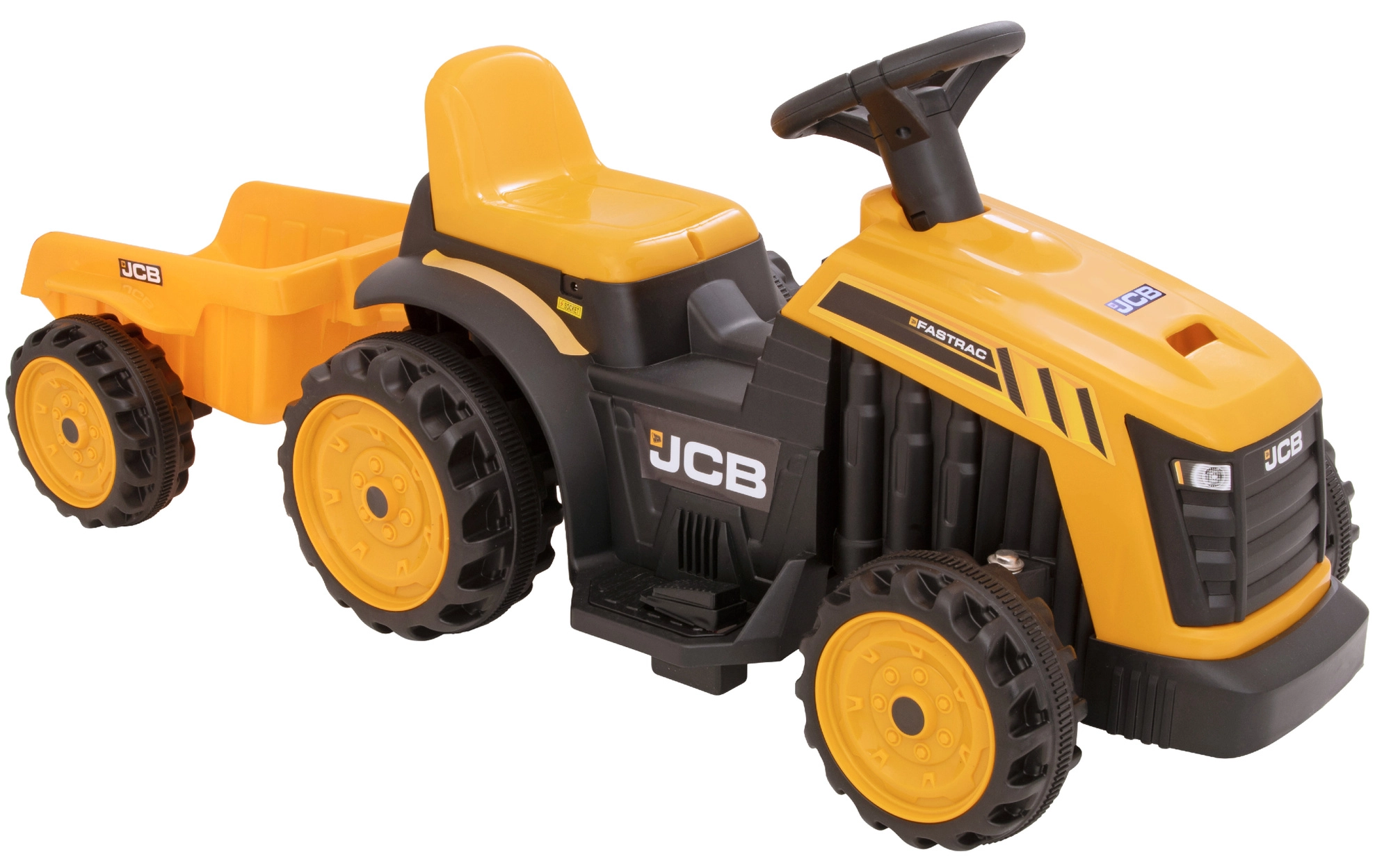 Az EVO márkájú elektromos járgány-traktor utánfutóval rengeteg élményt nyújt a kertben és a lakásban. Az egyszerű irányításnak és az alacsony végsebességnek köszönhetően a vezetés biztonságos és szórakoztató. A JCB stílusú, valósághű kivitel és az élénk színek aktív játékra ösztönöznek, fejlesztik a egyensúlyt és a koordinációt, valamint erősítik a lábizmokat.