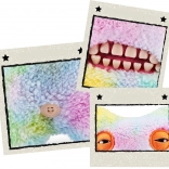 - pasztell multicolor, feltűnő szemek és fogacskák