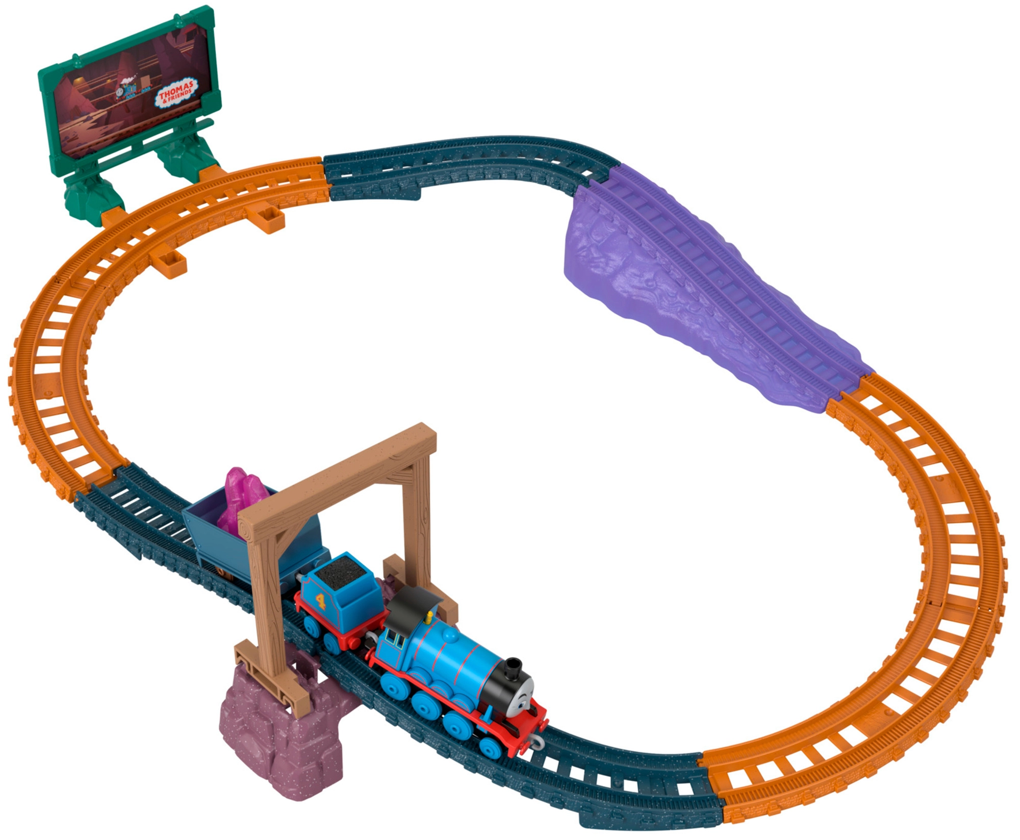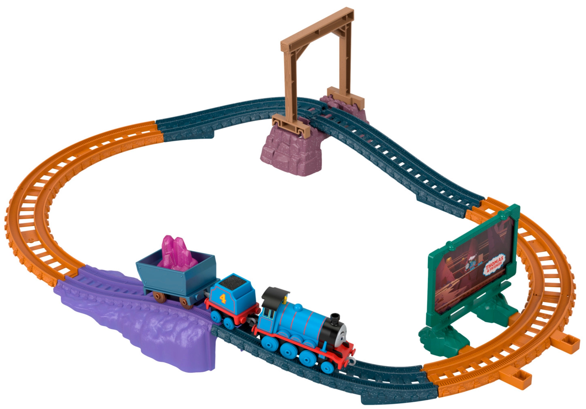 Fedezd fel a kalandokat Sodor szigetén a THOMAS & FRIENDS – Gábris a régi bányában készlettel. Színes műanyag pálya híddal és rámpákkal, Gábris mozdonnyal, két vagonkával és kristályrakománnyal – órákon át tartó kreatív játékhoz. A készlet kompatibilis más műanyag szettekkel a sorozatból (a fa változat kivételével), és ideális 3 éves kortól.