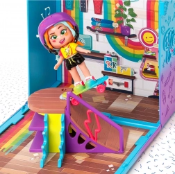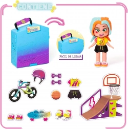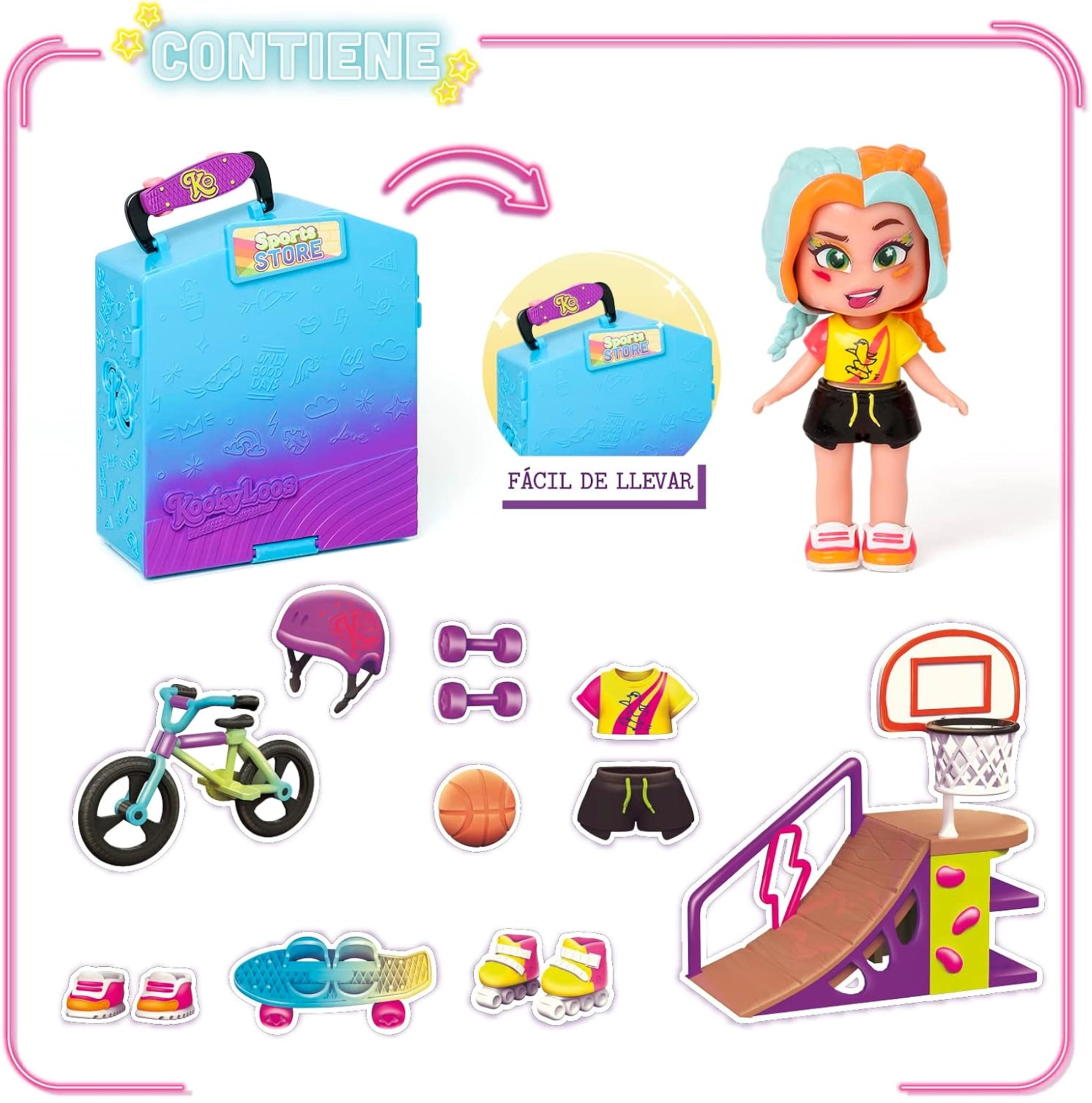 A Magic Box KookyLoos figurája egyszerre hozza el a szórakozást, a stílust és az egyedi személyiséget. Az exkluzív Lizzie készen áll a sportos kalandokra – a mozgatható ízületeknek, a mimika-váltó mechanizmusnak és a menő kiegészítőknek köszönhetően a gyerekek saját, akcióval és fantáziával teli történeteket alkothatnak. A nyitható bőrönd mini sportbolttá változik kerekpárral, görkorival és gördeszkával.