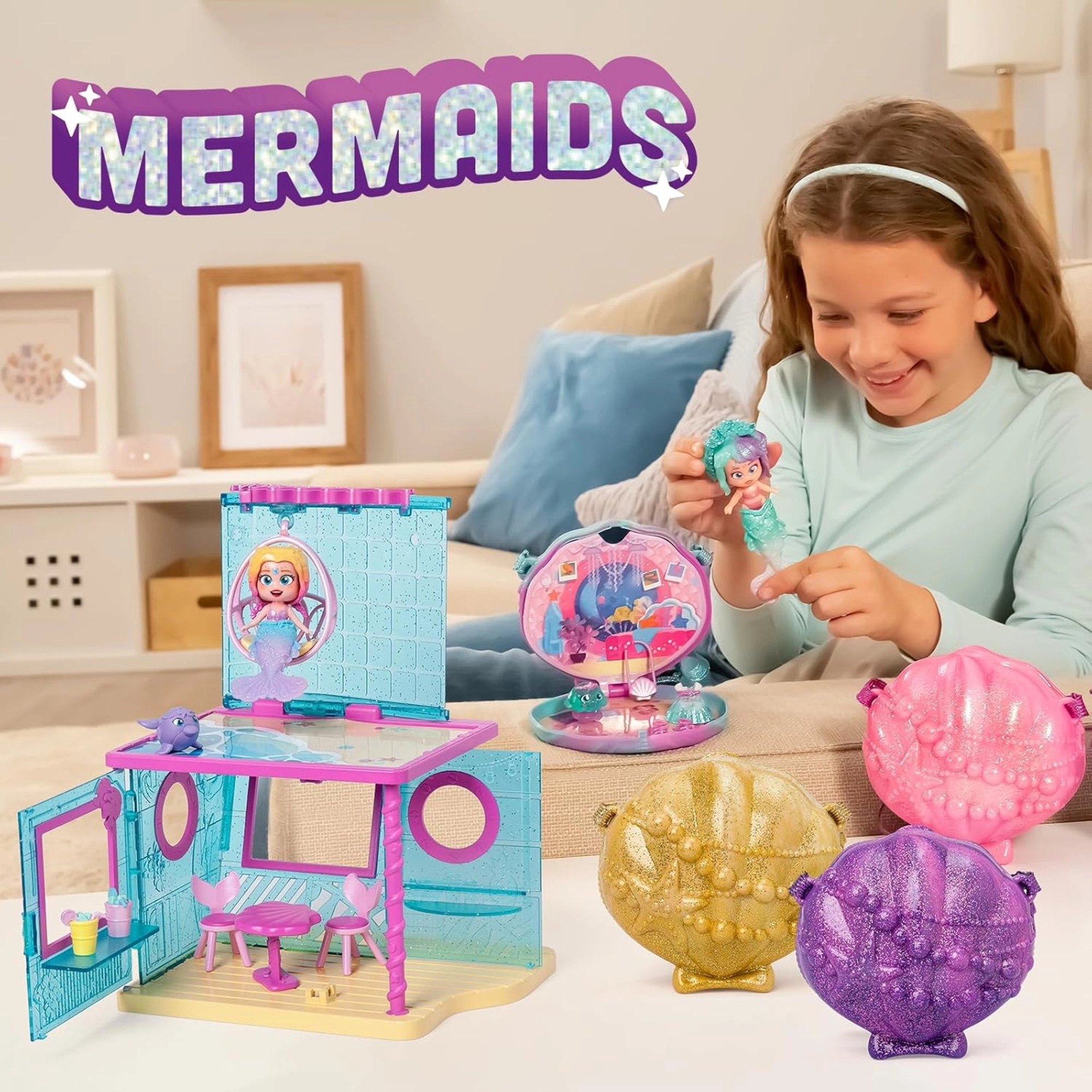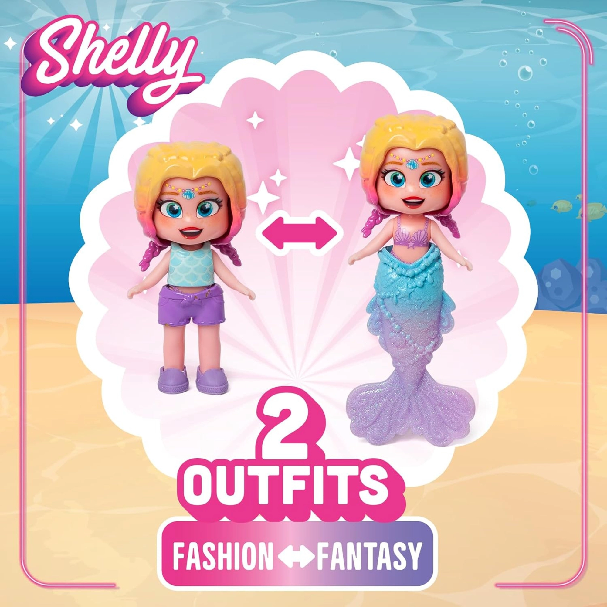 Merülj el a víz alatti világban a KookyLoos MERMAID sorozattal – a bájos Shelly sellővel, aki mozgatható ízületekkel, 3 arckifejezéssel és látványos, csillogó farokkal érkezik. Nyisd ki a sellők tengerparti házikóját, díszítsd fel kedved szerint, és élj át végtelen kalandokat hűséges társával, a kis delfinnel!