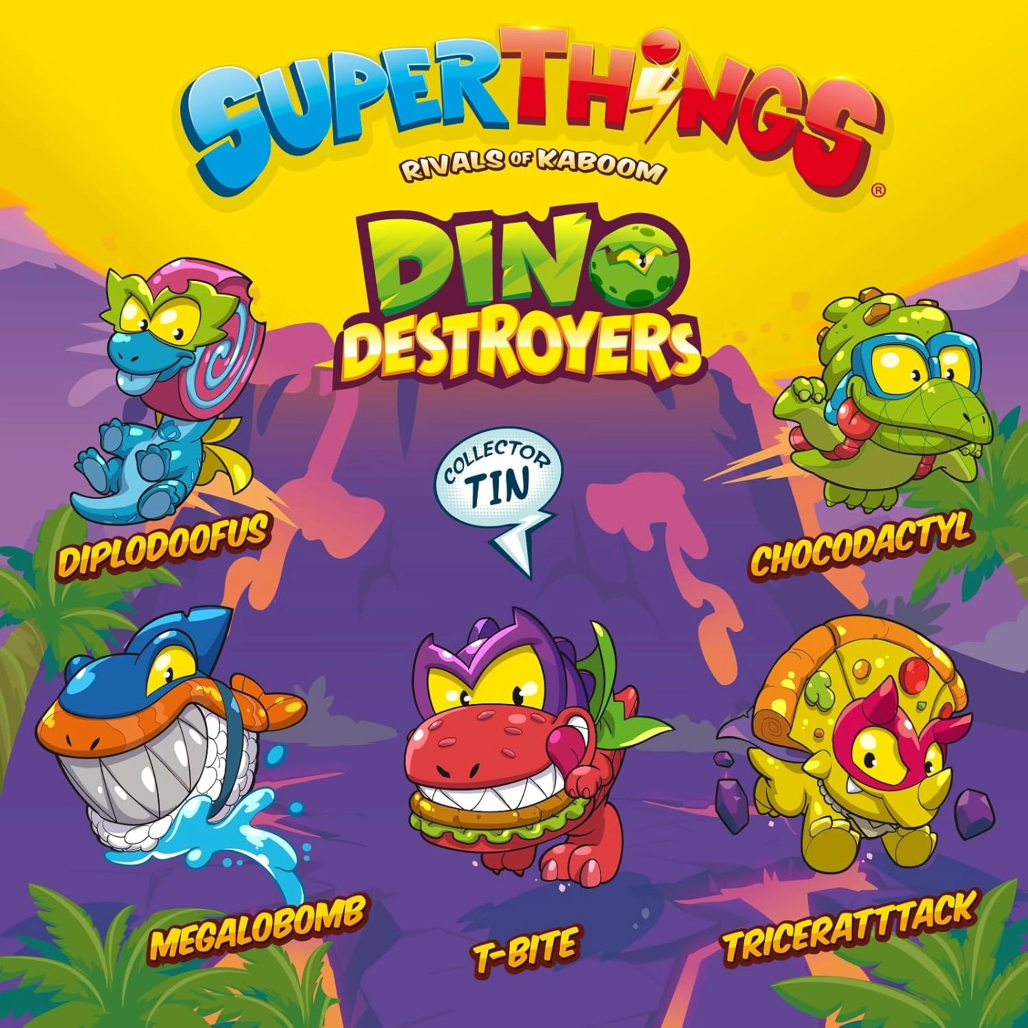 Fedezze fel a SuperThings Dino Destroyers gyűjtői szenzációját elegáns, ezüst fémdobozban. Belül 5 exkluzív figurát talál, amelyek máshol nem elérhetők, valamint biztonságos fém csomagolást, amely ideális a kollekció tárolására. A készlet prehistorikus dínó motívumokat ötvöz ételekkel, és szórakozást, kiállíthatóságot és gyűjtői értéket kínál a Kaboom City rajongóinak.