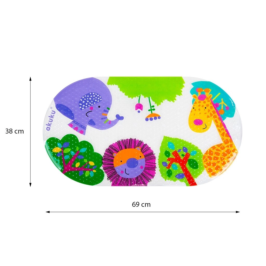 Az Akuku alátétet babakádakhoz, hagyományos kádakhoz és zuhanykabinokhoz tervezték. Az alján lévő sok tapadókorong erősen tart a sima felületen, míg a strukturált felület segít megelőzni a megcsúszást. A kiváló minőségű, ftalátmentes PVC anyag kellemesen rugalmas.
