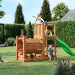 Átgondolt kialakításának köszönhetően a szett családi kertekbe ideális, egyszerre akár 5 gyermek számára is (max. 50 kg felhasználónként). Az összeszerelést teljes kötőelem-készlet, szerszámok és illusztrált útmutató könnyíti meg. A játszótér segíti a nagymozgások, a koordináció és a szociális készségek fejlődését a közös játék során.