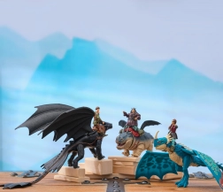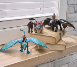 - Dragon & Viking Rider duó: Astrid (kb. 7,5–7,6 cm) a sárkányra (kb. 25 cm) a nyereg erős rögzítéseivel illeszthető.