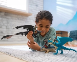 A figurák strapabíró műanyagból készültek, a lovas könnyen a sárkány hátára rögzíthető, így a gyerekek ikonikus jeleneteket játszhatnak el vagy saját kalandokat alkothatnak Berk világában. A szett remekül bővíti a Dragons gyűjteményt, és kombinálható más figurákkal és sárkányokkal.