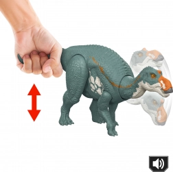 A Mattel figurája hűen ábrázolja a Maiasaurát valósághű bőrtextúrával, élénk színekkel és részletgazdag kidolgozással. A mozgatható ízületeknek a lábakban, a nyakban és a farokban köszönhetően könnyedén beállíthatók dinamikus pózok a nyugodt sétától a támadásig. A farok irányítása aktiválja a jellegzetes állkapocs-csapást és az üvöltést, ami még élethűbbé teszi a játékszituációkat.