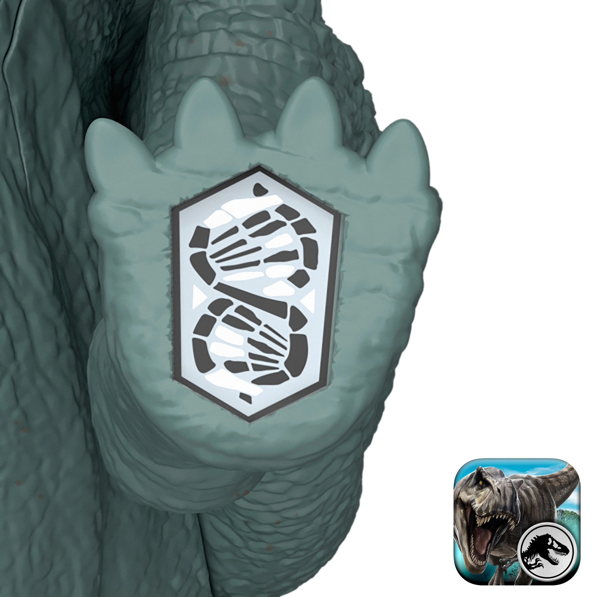 A figura lábán található rejtett DNS-kód beolvasható az ingyenes Jurassic World Reborn: Facts alkalmazásban (Android/iOS). AR környezetben felfedezhető a csontváz modell röntgen módban, a termál nézet, oktató tartalmak, valamint minijátékok, például dinoszauruszverseny vagy fosszíliakeresés.