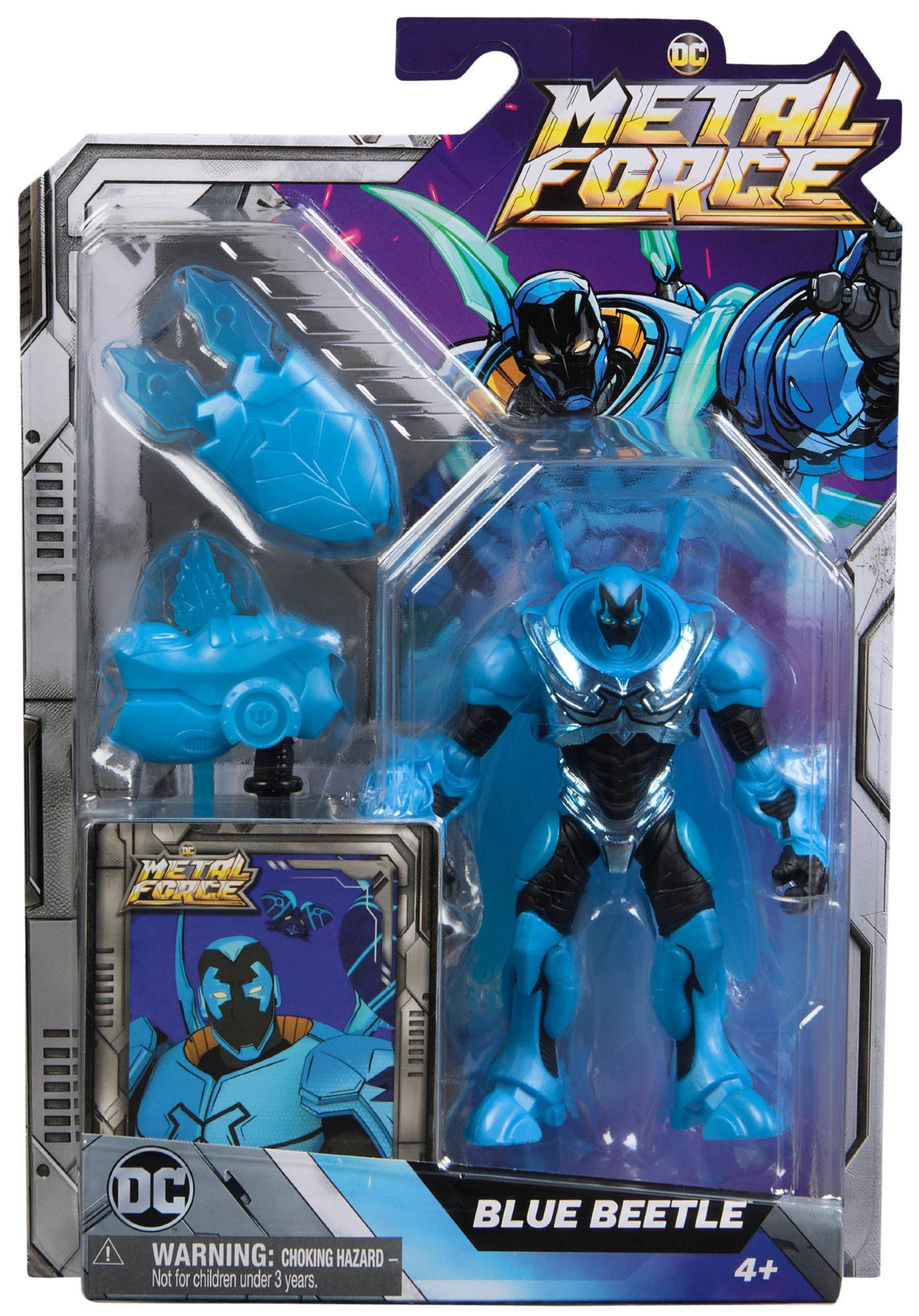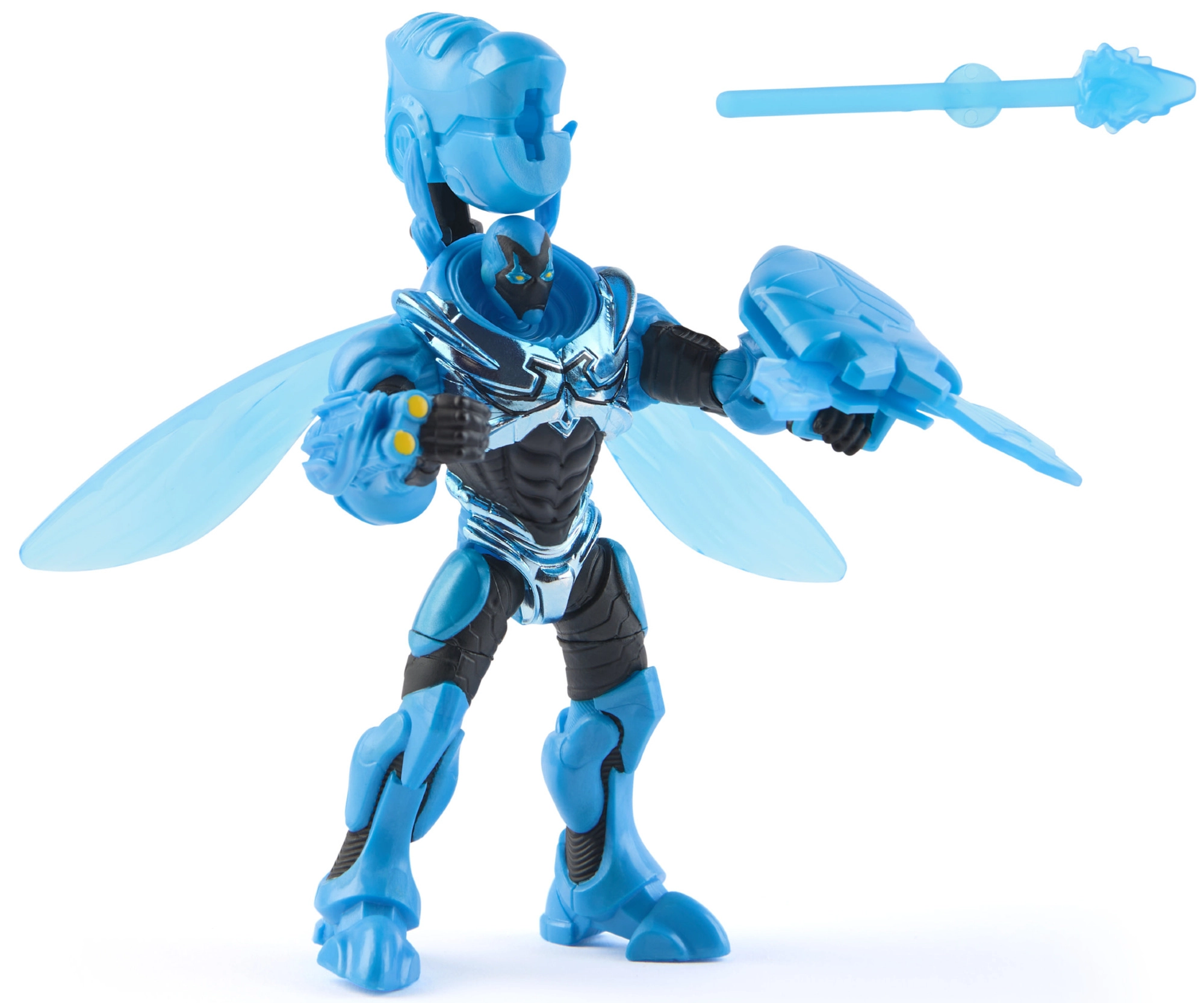 A dobozban tematikus kiegészítőket talál – pajzsokat, fegyvert és szárnyakat, amelyek fokozzák a fantáziadús játékot. A csomag tartalmaz továbbá egy karakterkártyát és egy talpat a stílusos kiállításhoz. A figura hivatalos DC-licenccel készül, és hűen adja vissza BLUE BEETLE megjelenését.
