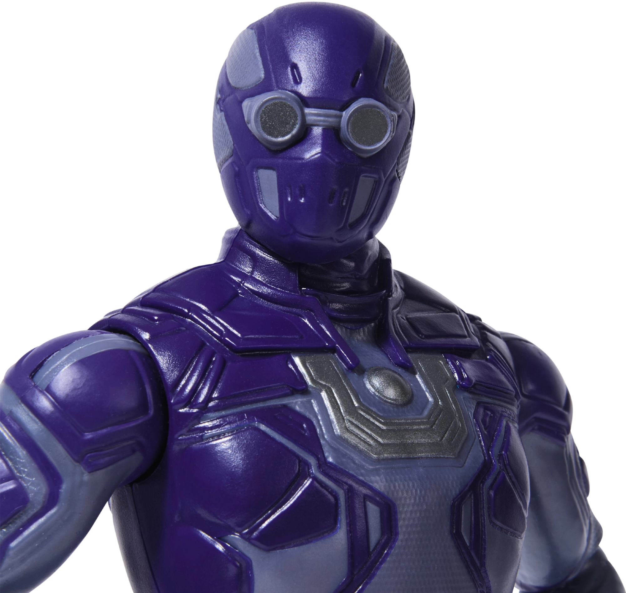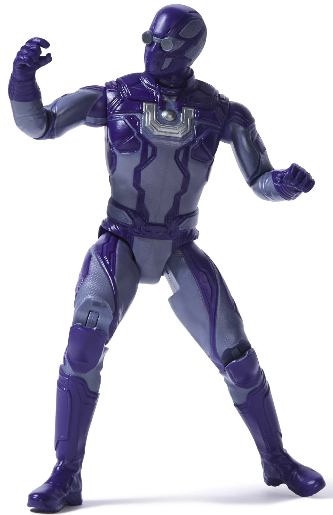 A lila páncél precíz részletekkel és ikonikus mellkasi jellel hűen idézi a DC univerzum karakterét.