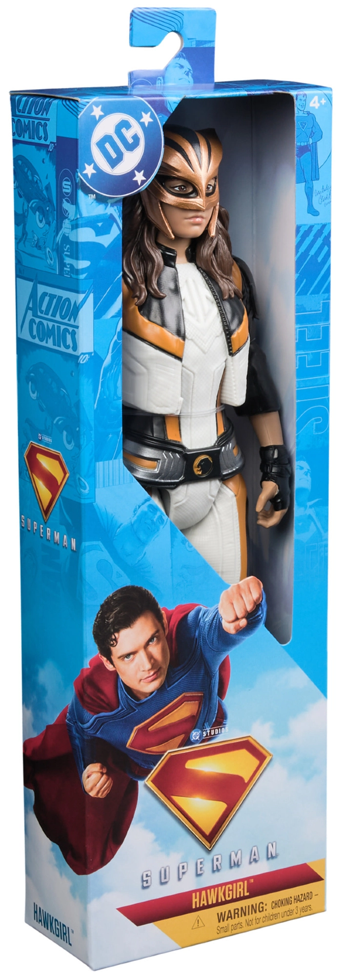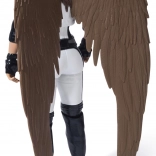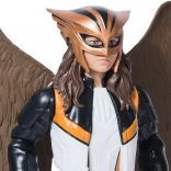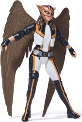 A HAWKGIRL figura fehér–fekete öltözetben arany részletekkel hűen idézi a thanagari harcos képregényes és animációs megjelenését. A mozgatható karoknak, lábaknak és fejnek köszönhetően könnyen beállíthatók harci és repülő pózok a különálló barna szárnyakkal.