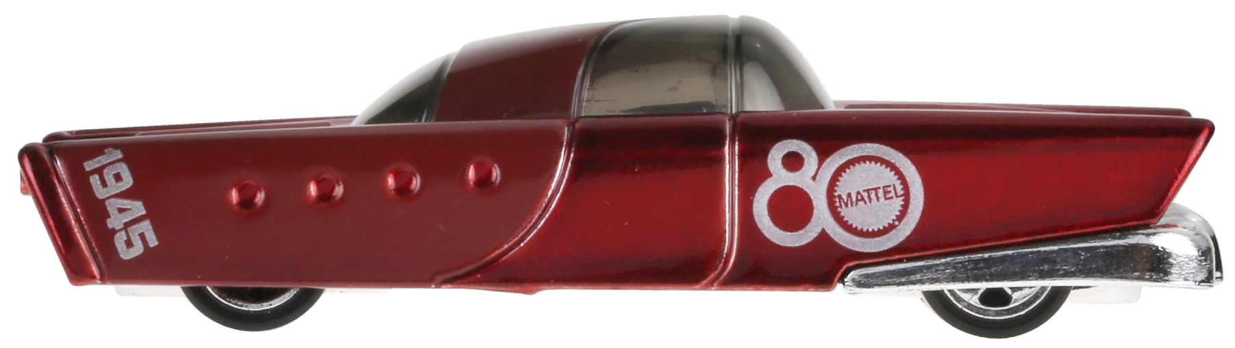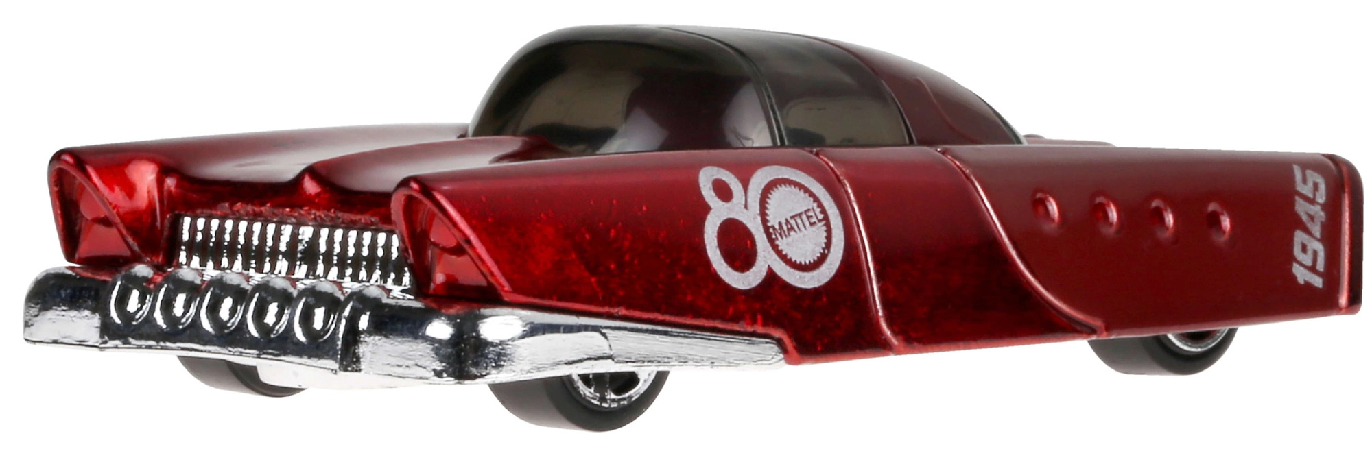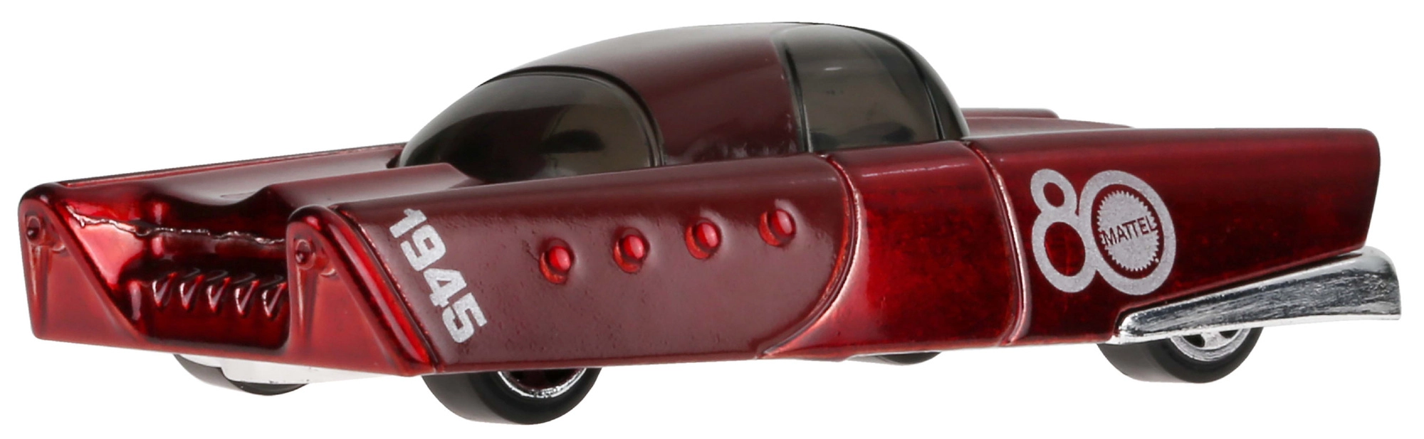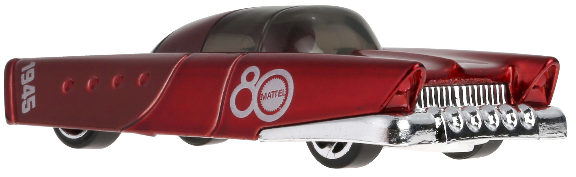 A Mattel 80. évfordulós kiadás mély rubinvörös fényezést kapott „80 Mattel” grafikákkal és a „1945” számmal. A kisautó klasszikus 1:64 méretarányú, vitrinbe és otthoni pályákon való dinamikus szórakozáshoz egyaránt ideális.