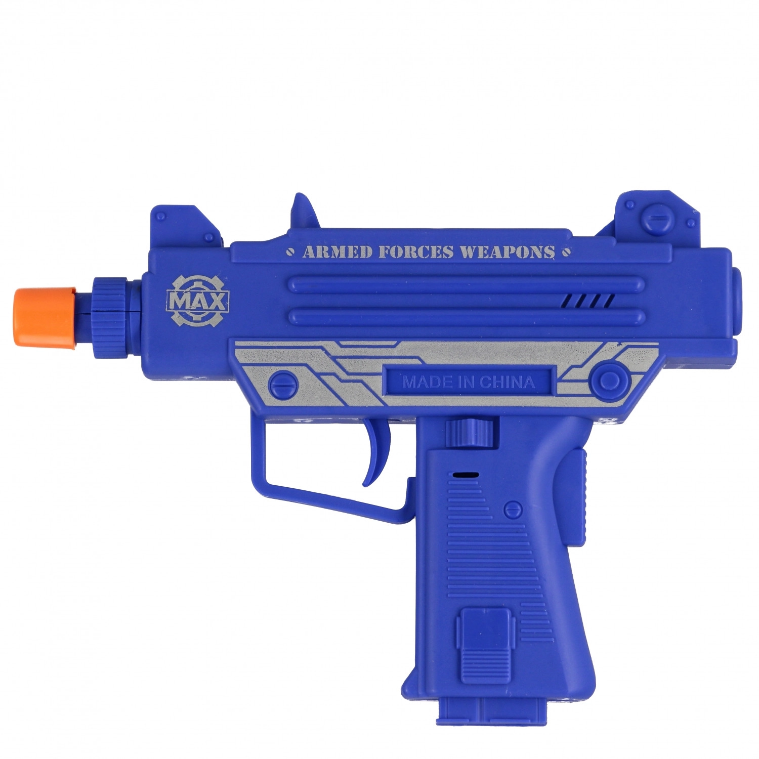 A narancssárga biztonsági csúccsal és formázott markolattal ellátott műanyag fegyver kényelmes fogást és biztonságos játékot biztosít a gyerekeknek.