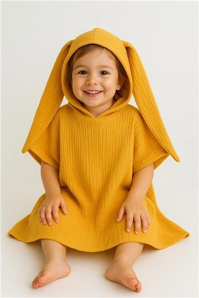 Fedezze fel a praktikus és stílusos, dupla gézből (muszlinból) készült poncsót, amit a gyerekek imádnak. Könnyű, szellős és gyorsan szárad, ezért fürdés után, a medencénél és a strandon is tökéletes. A bő szabásnak köszönhetően a poncsó sokáig hordható, és különböző testalkatokra is remekül illik.