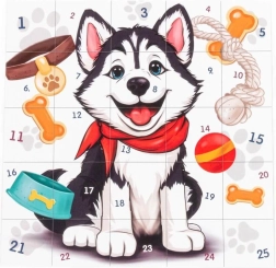A bájos kutyás motívumú puzzle örömet szerez a kis kirakórajongóknak. 25 darabot tartalmaz, kompakt mérete 200 × 190 × 12 mm, és ideális 3 éves kortól a türelem és a finommotorika fejlesztésére.